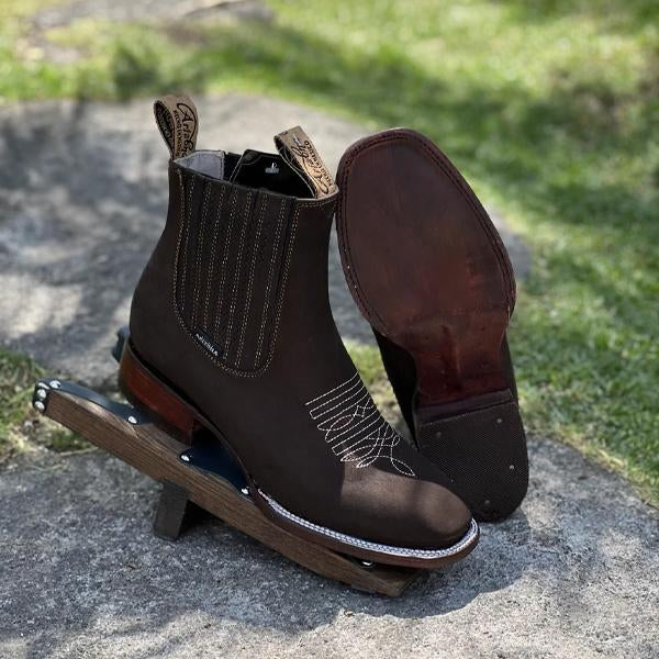 MEN'S RETRO SQUARE TOE SIDE ZIPPER ANKLE BOOTS 88698303YL