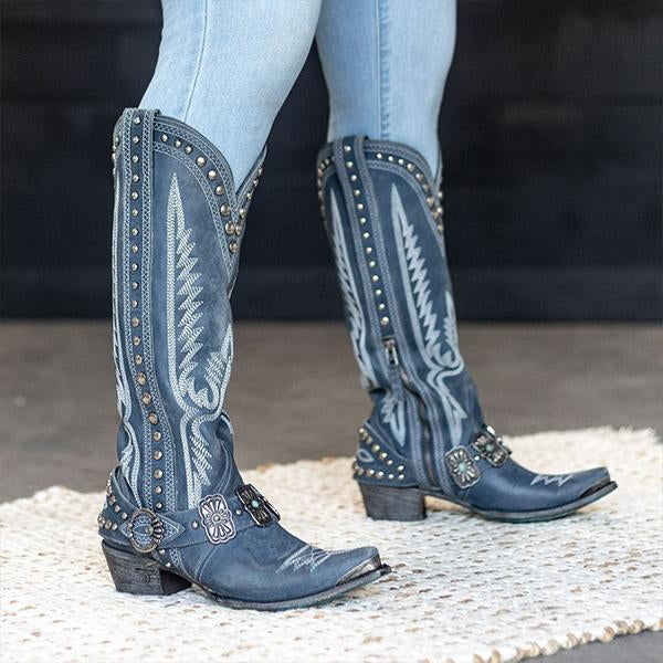 MEN'S VINTAGE RIVET BELT BUCKLE TALL COWBOY BOOTS 30964285S