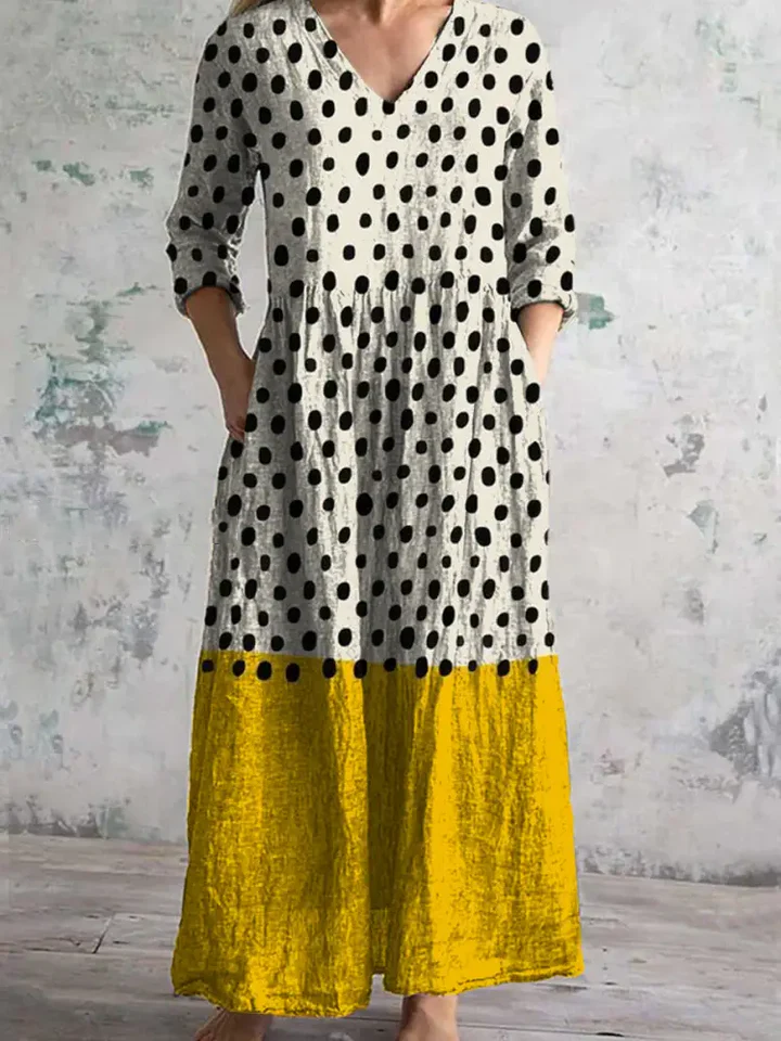 Women's Art Polka Dots Pattern Cotton And Linen Dress