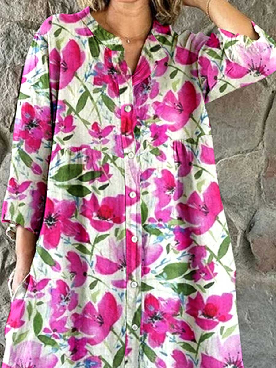 Women's Resort Art Watercolor Floral Cotton Shirt Dress