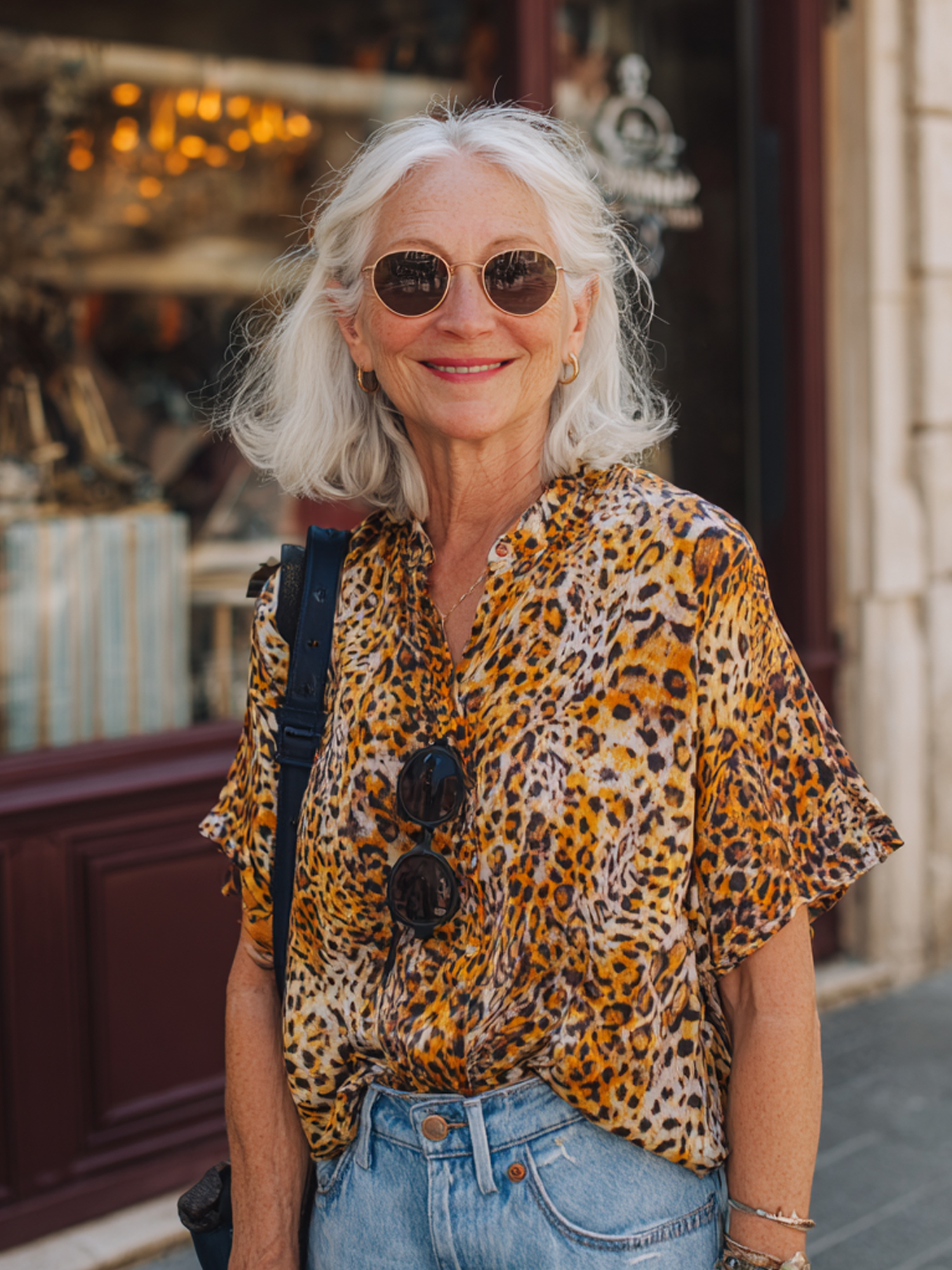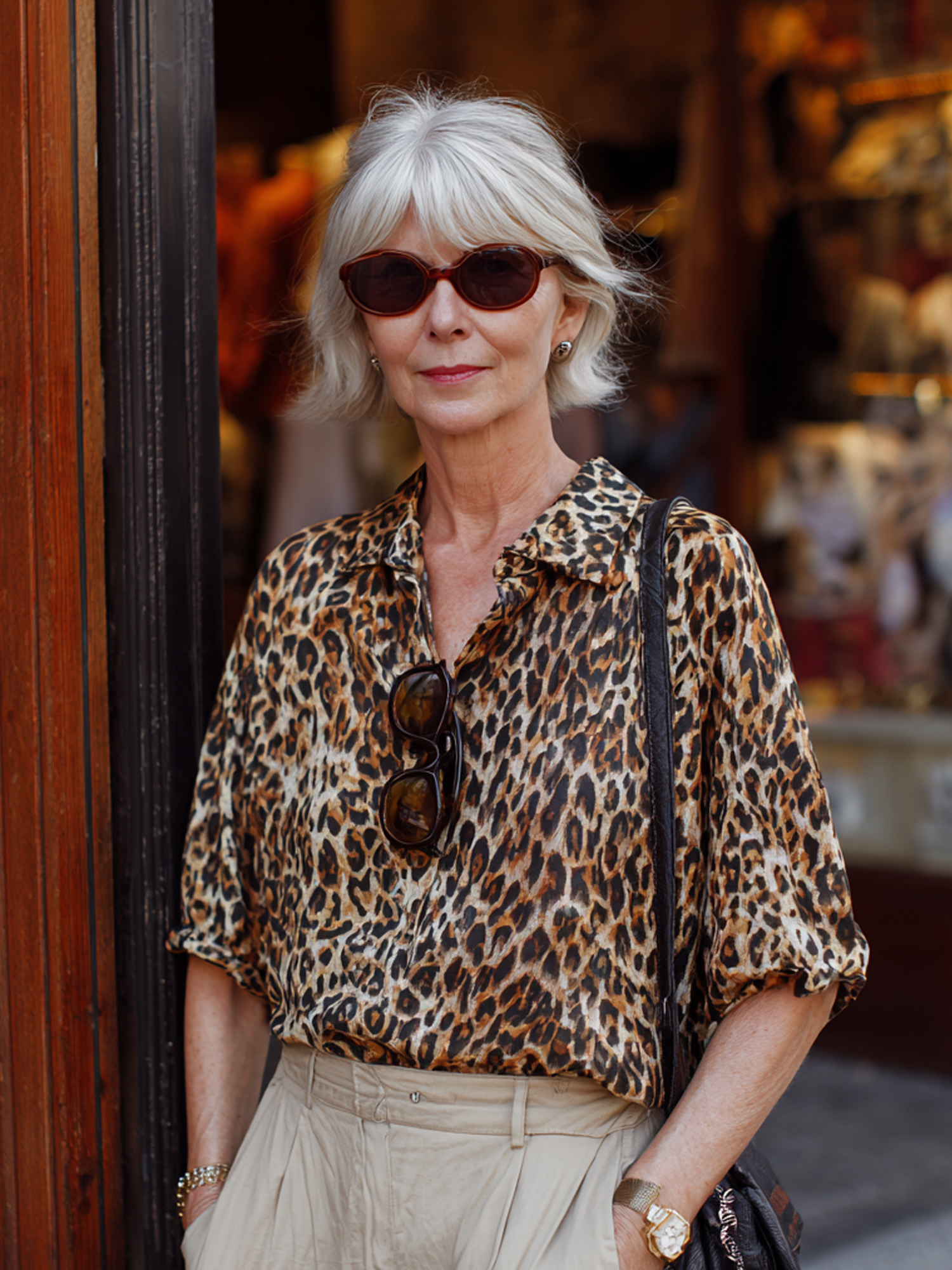 Casual leopard print short-sleeved shirt