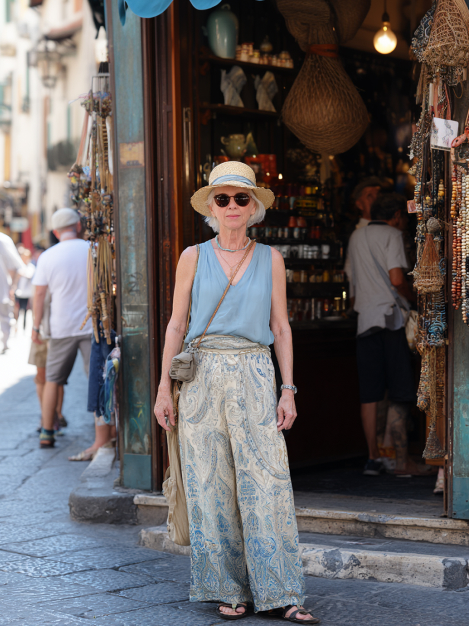 Casual Sleeveless Top + Printed Straight Pants