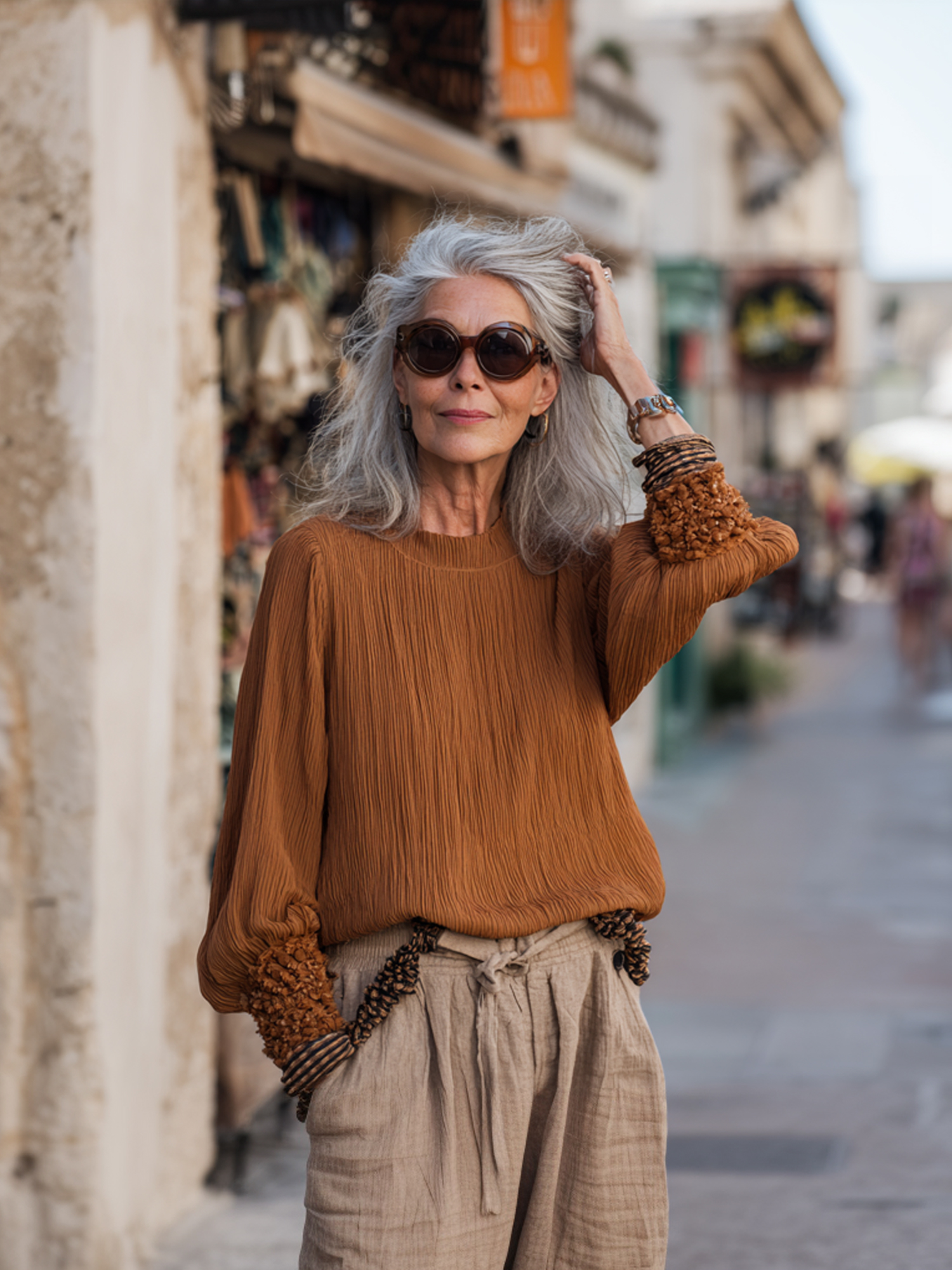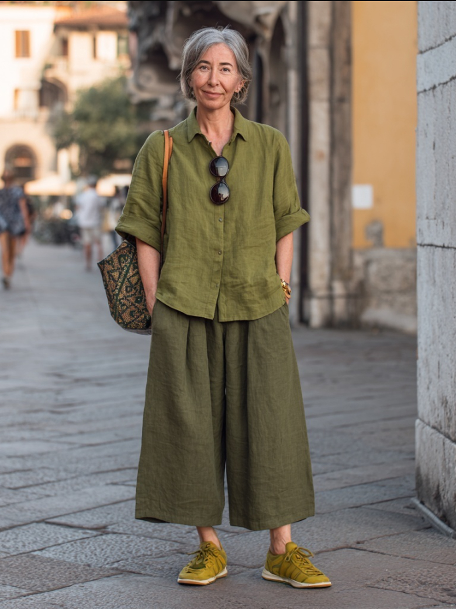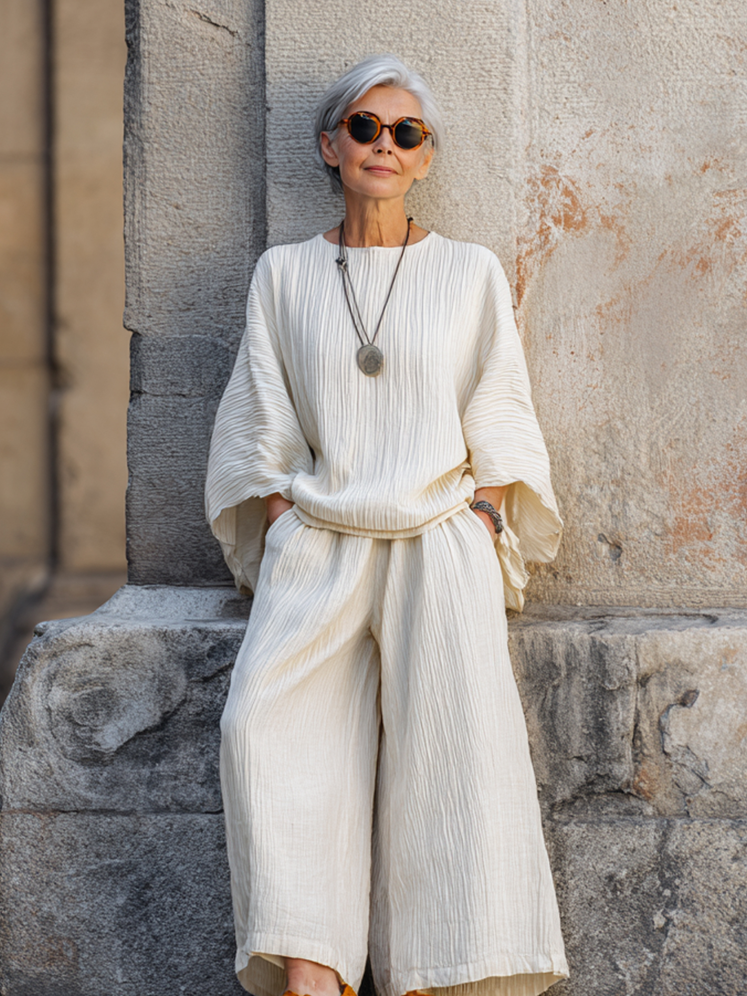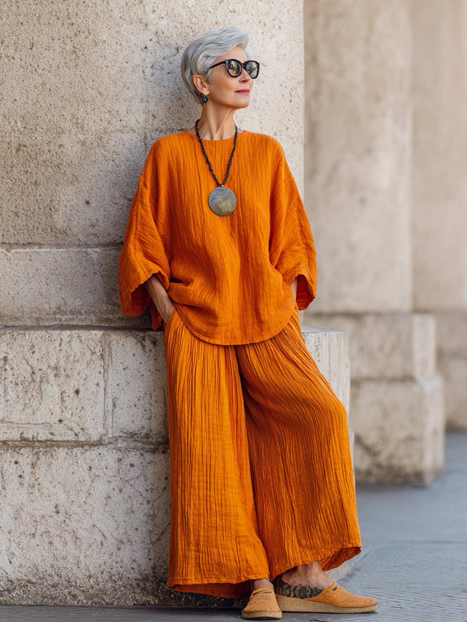 Linen Gradient Top and Wide-Leg Pants Set