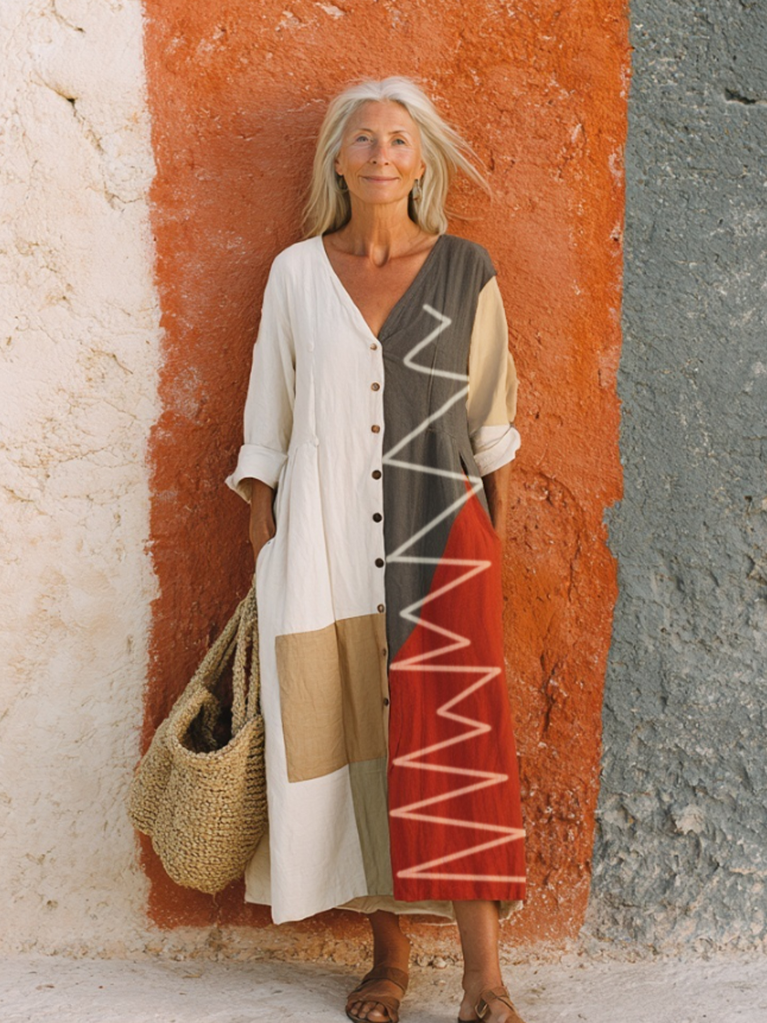 Cotton and Linen Colorblock Loose Dress