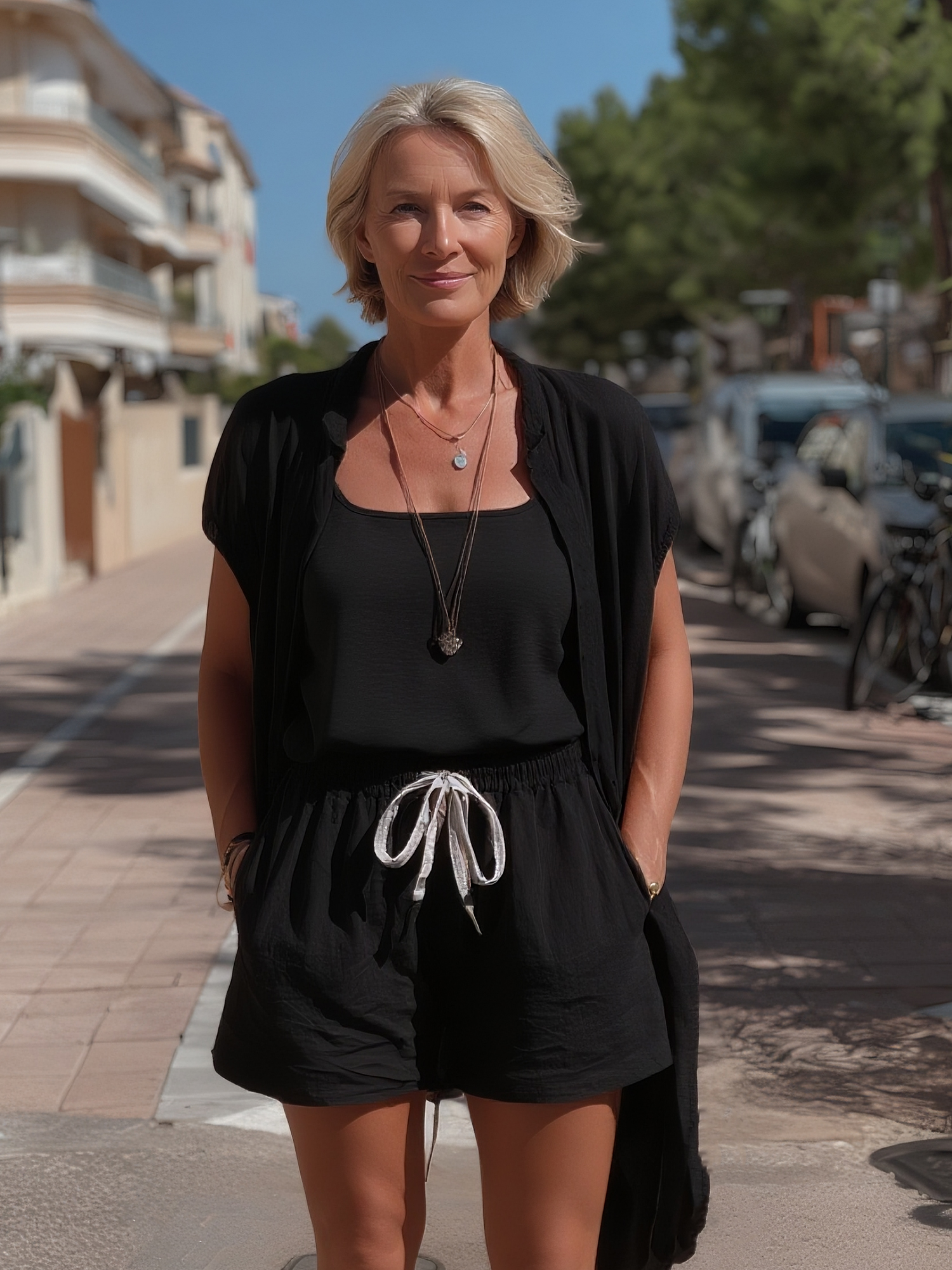 Solid color casual cardigan + inner wear + shorts