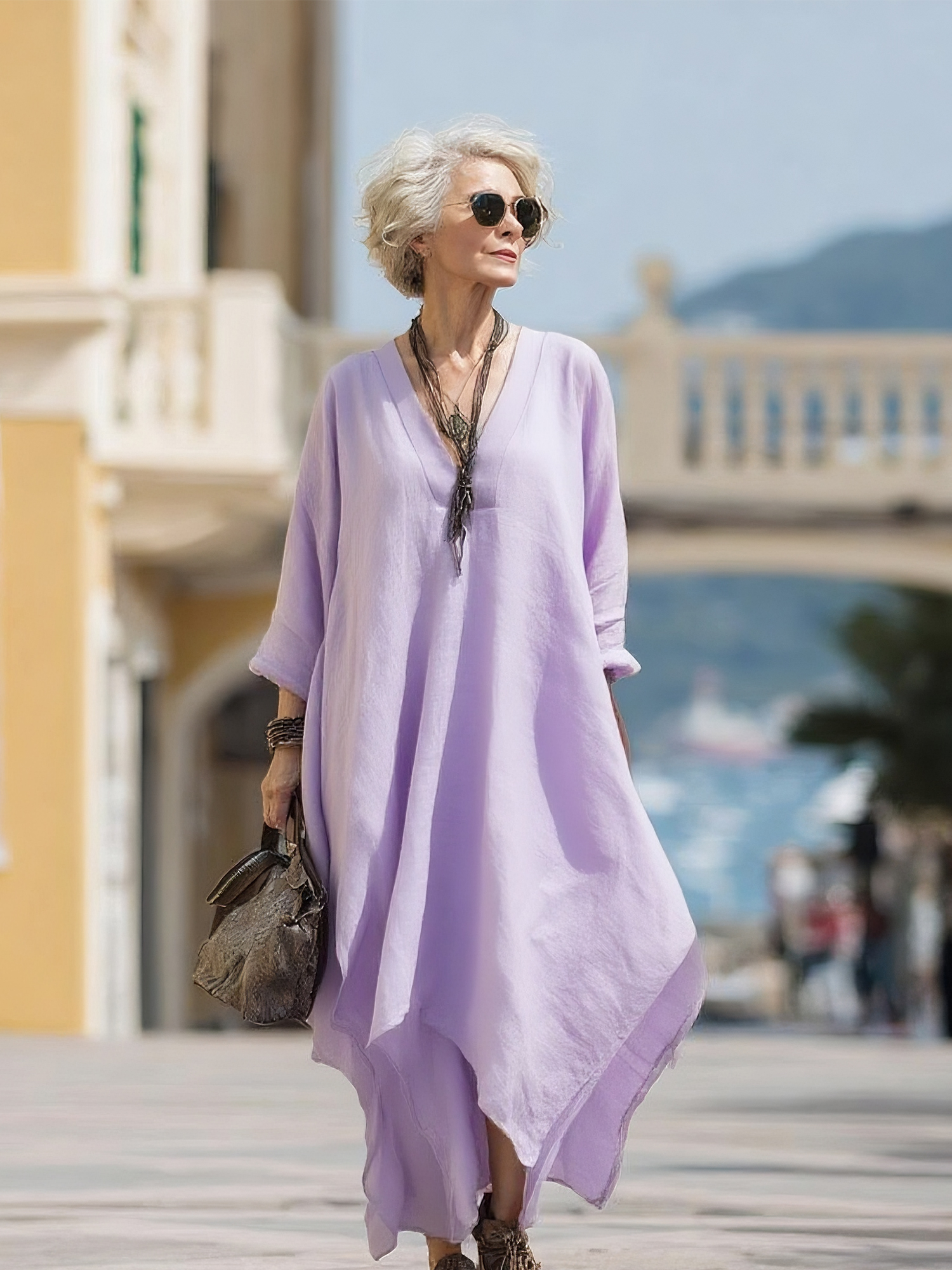 Simple solid color dress