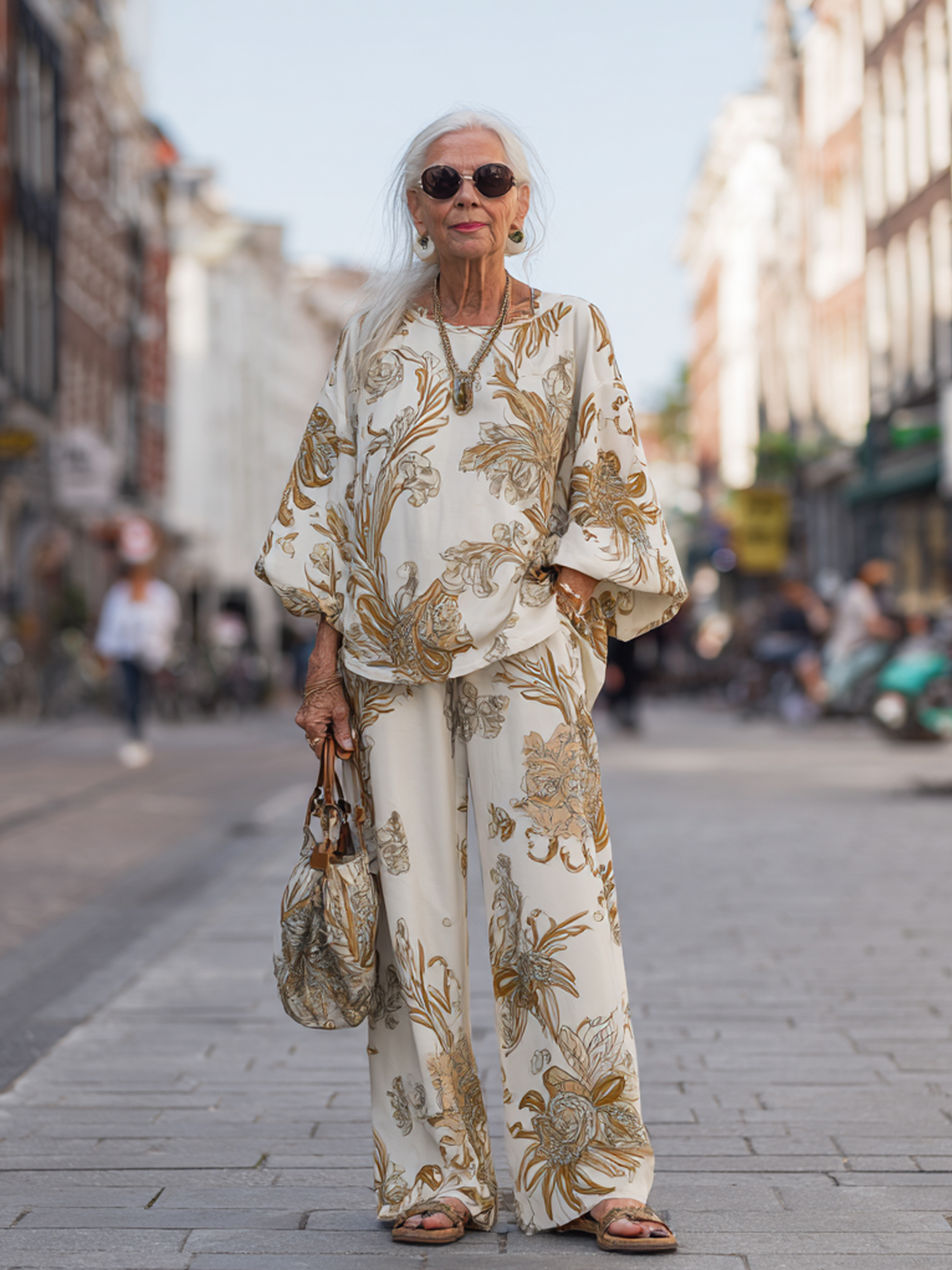 Classic Print Long Sleeve Wide Leg Pants Suit