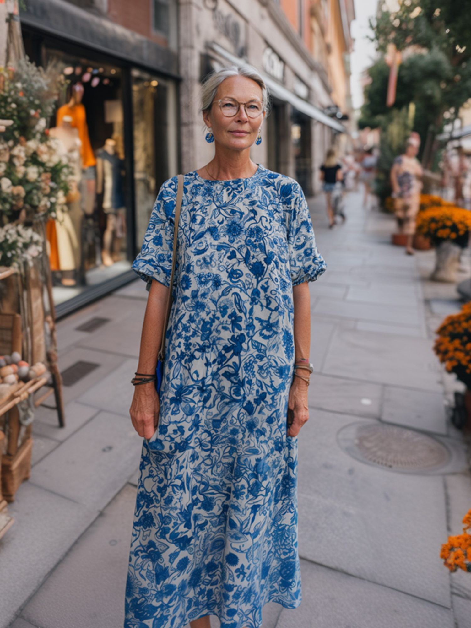 Vintage Blue - Floral Loose Dress (Casual Style)
