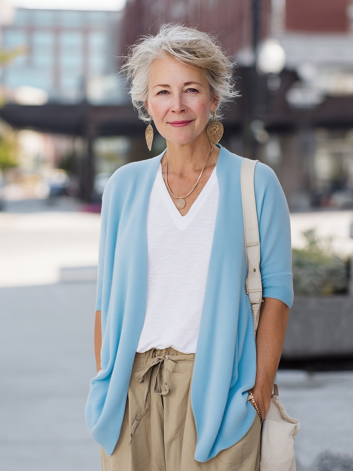 Lightweight knitted casual mid-sleeve cardigan