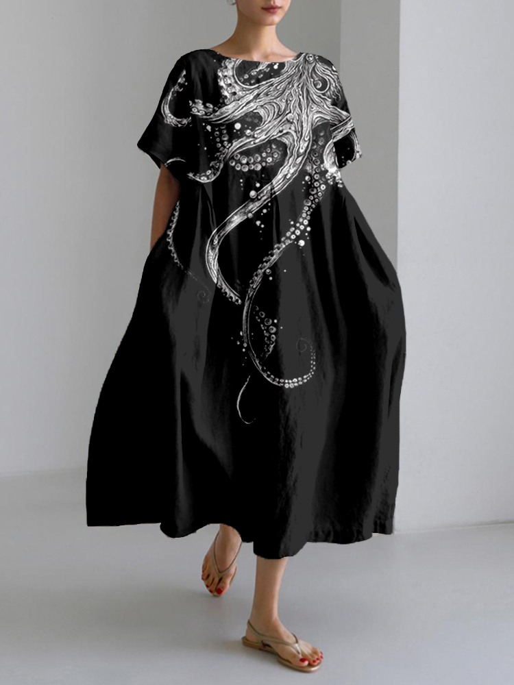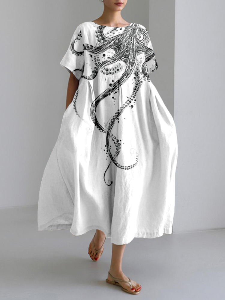 Octopus Tentacles Pattern Linen Blend Maxi Dress