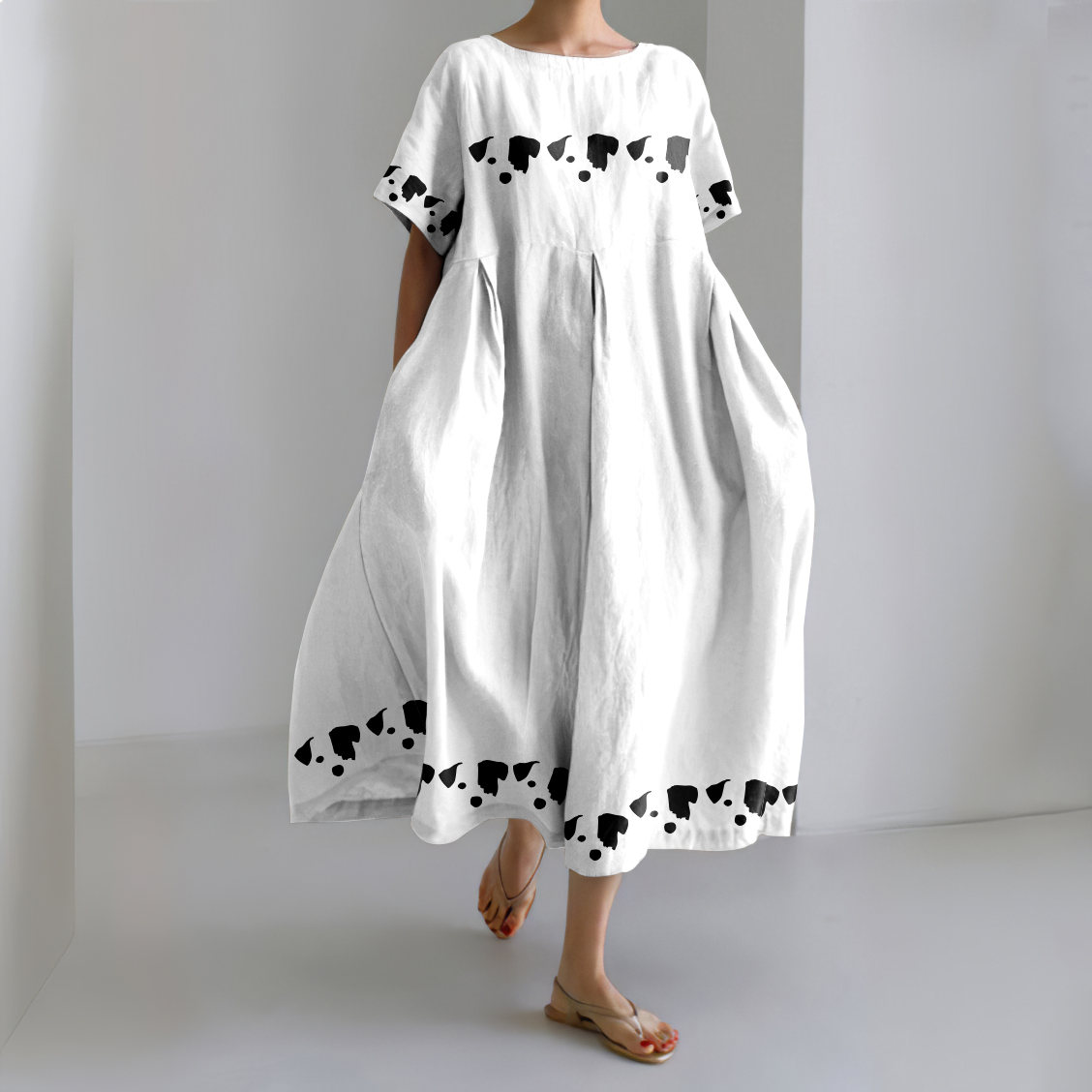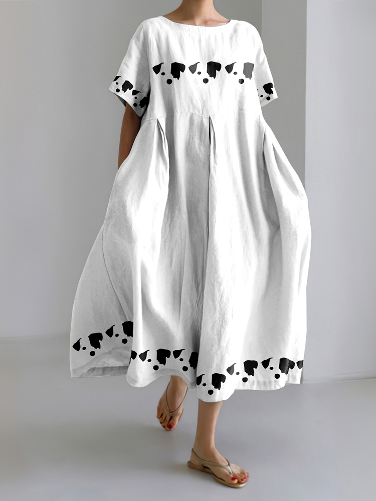 Women'S Funny Dog Print Short Sleeve Linen Blend Midi Dress
