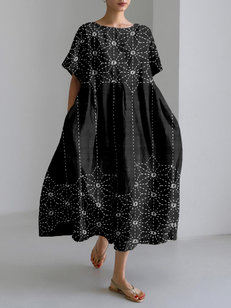Beautiful Japanese Sashiko Asanoha Pattern Maxi Dress