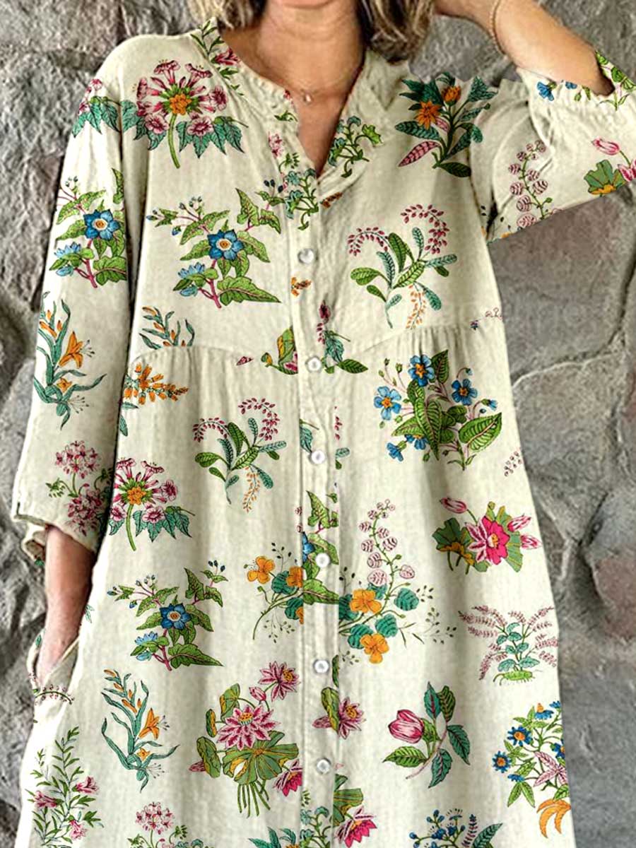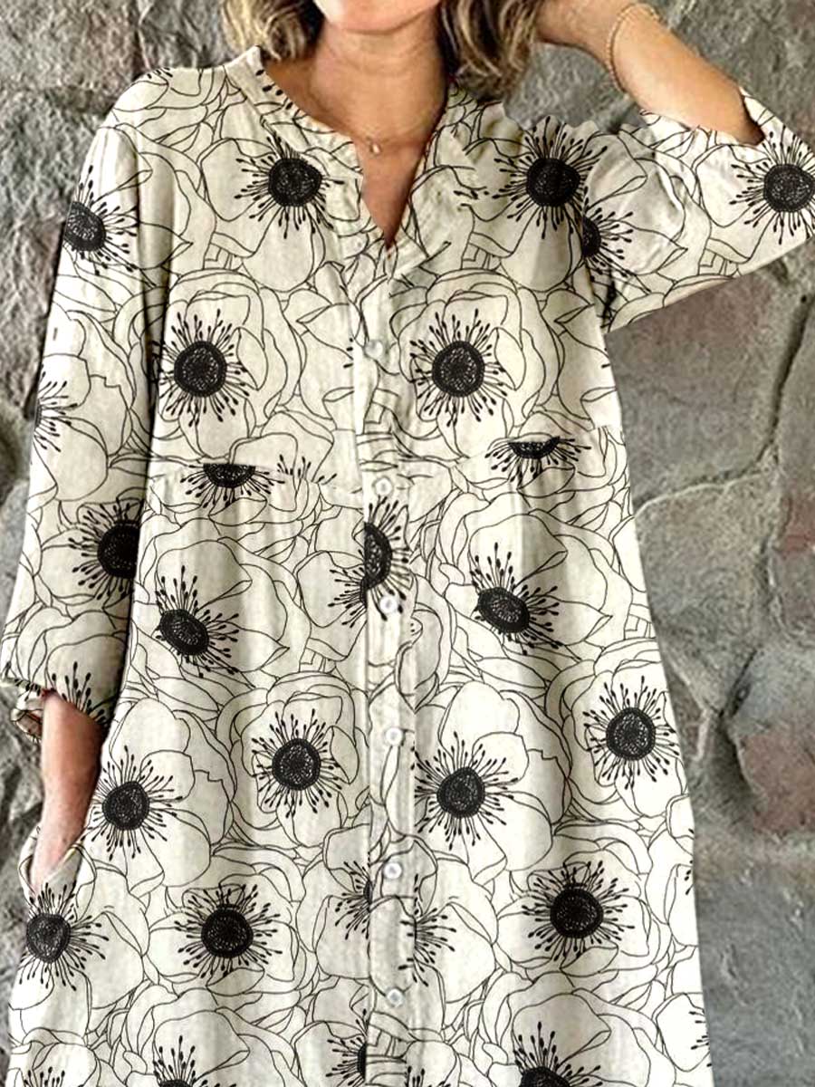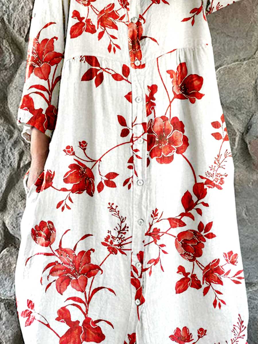 Women's Resort Art Floral Pattern Cotton Shirt Dress