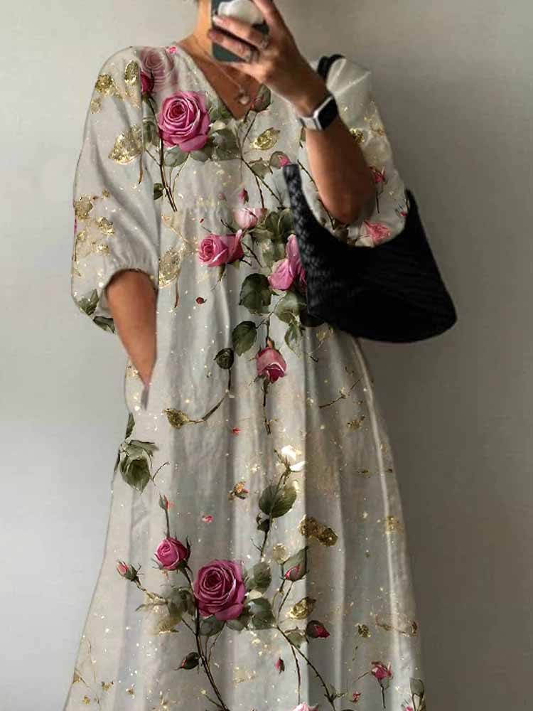 Women's Artistic Rose Holiday Floral Pattern Cotton Dress