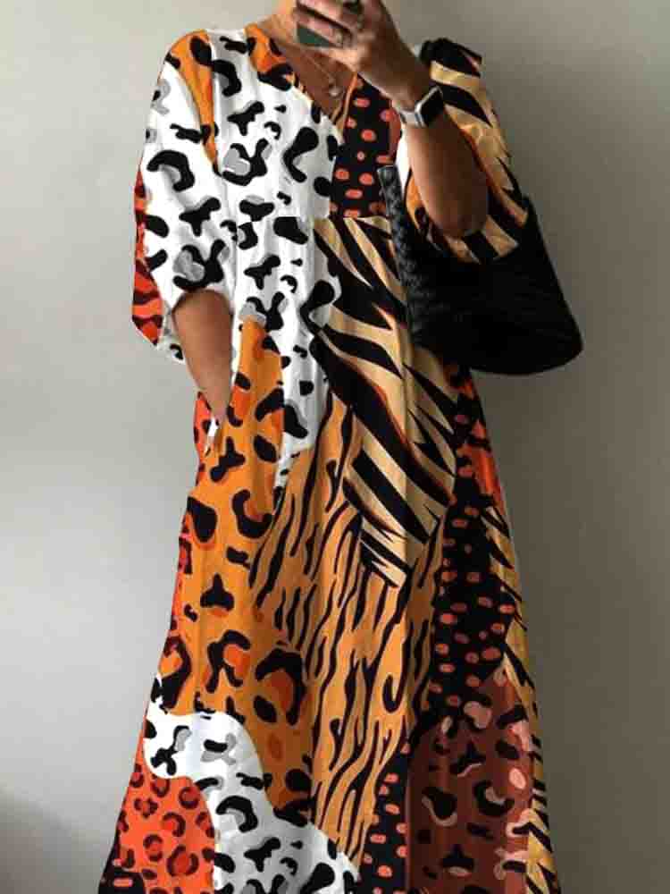 Women'SVacation Leopard Print Pattern Cotton Dress