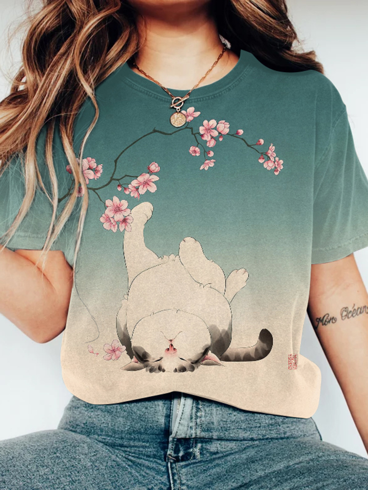 Cute Cat Print Short Sleeve T-Shirt
