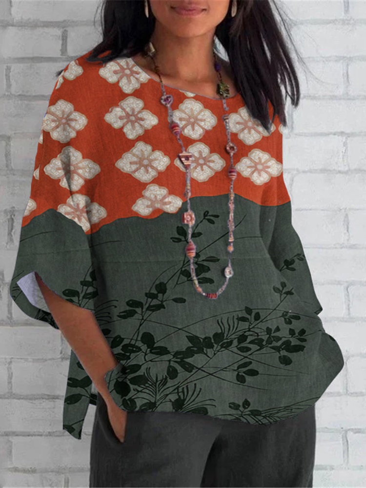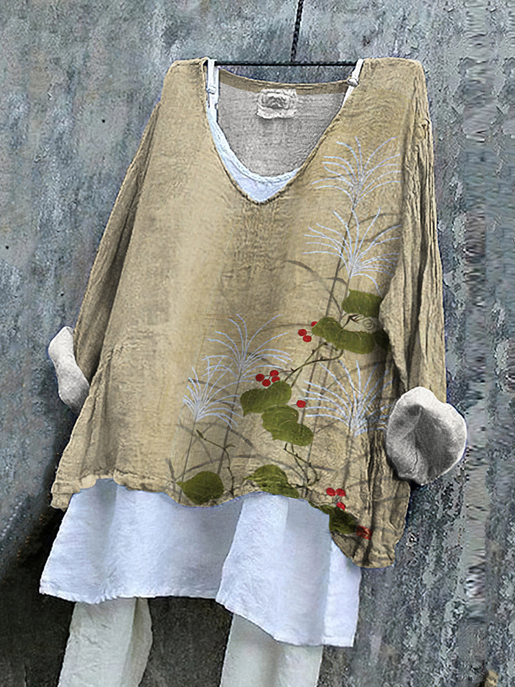 Floral Print V-Neck Casual Blouse