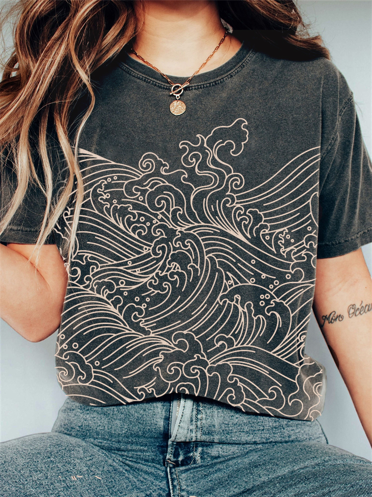 Sea Waves Japanese Art Vintage Washed T Shirt