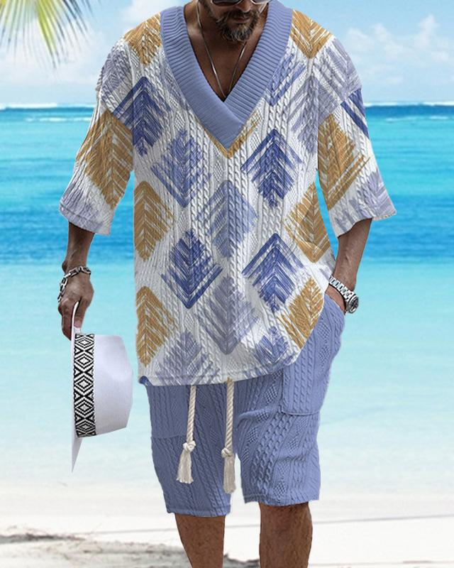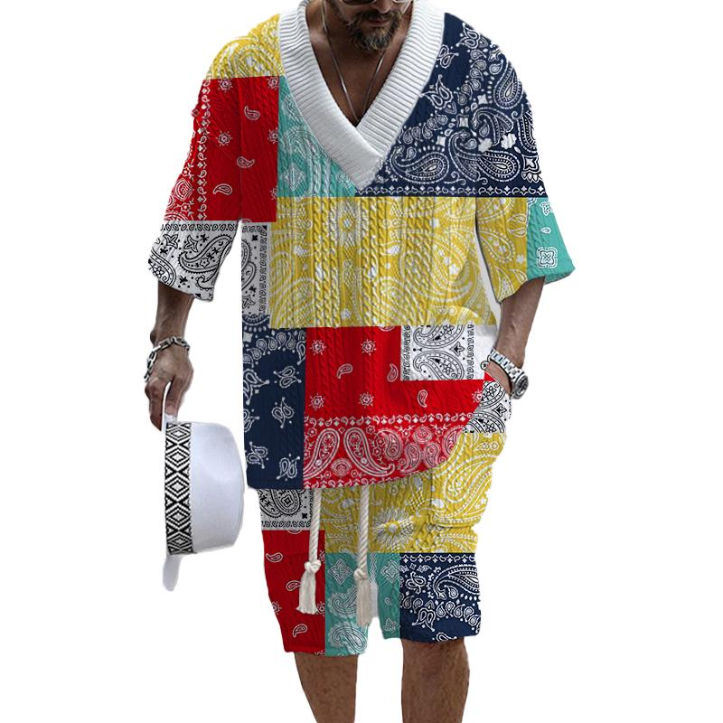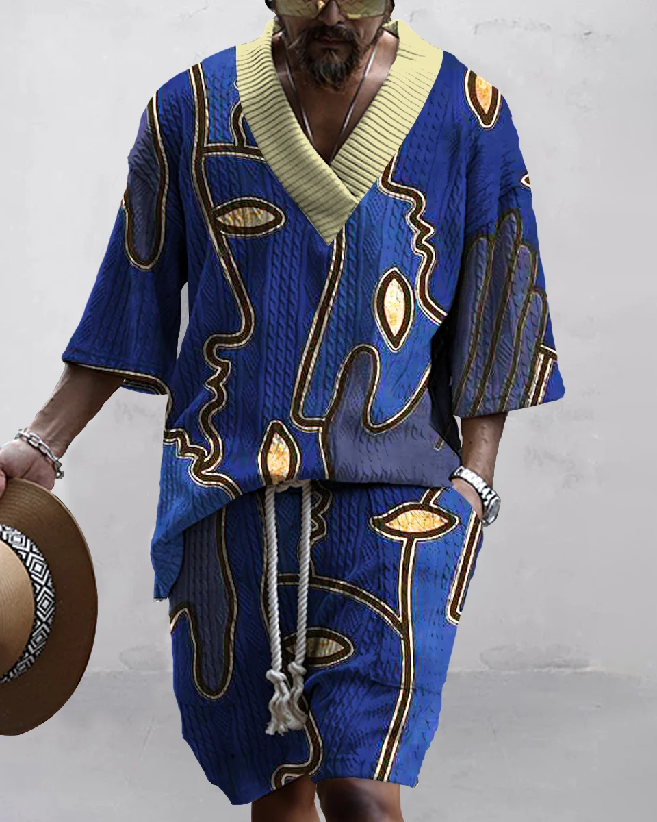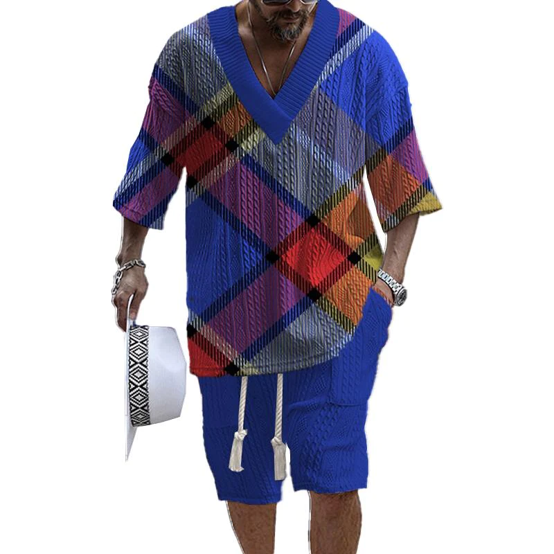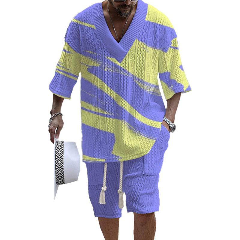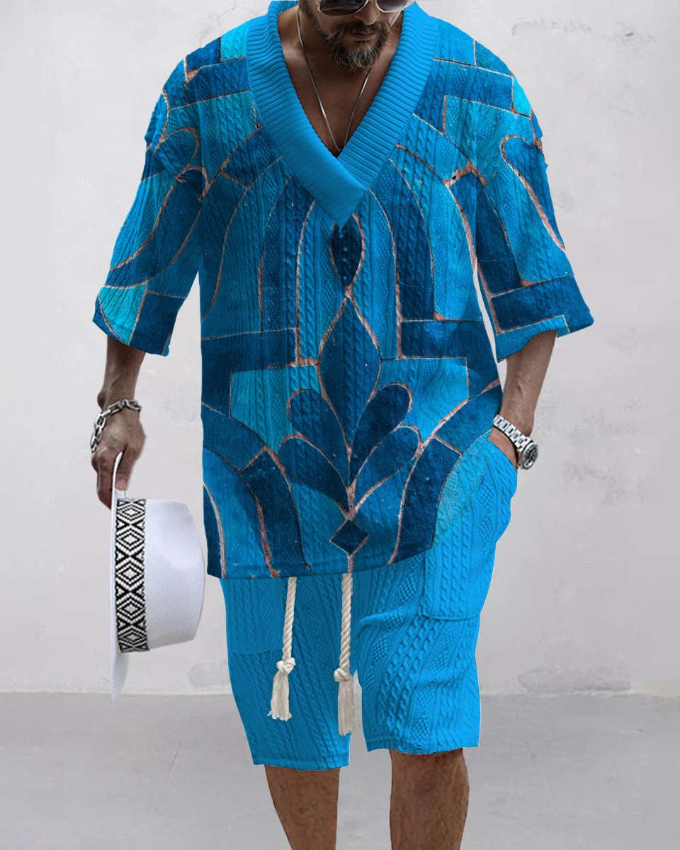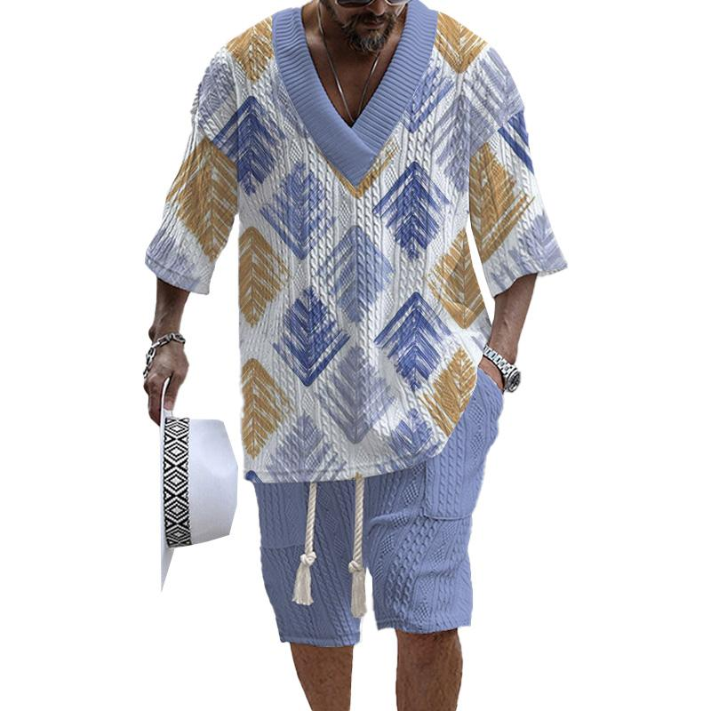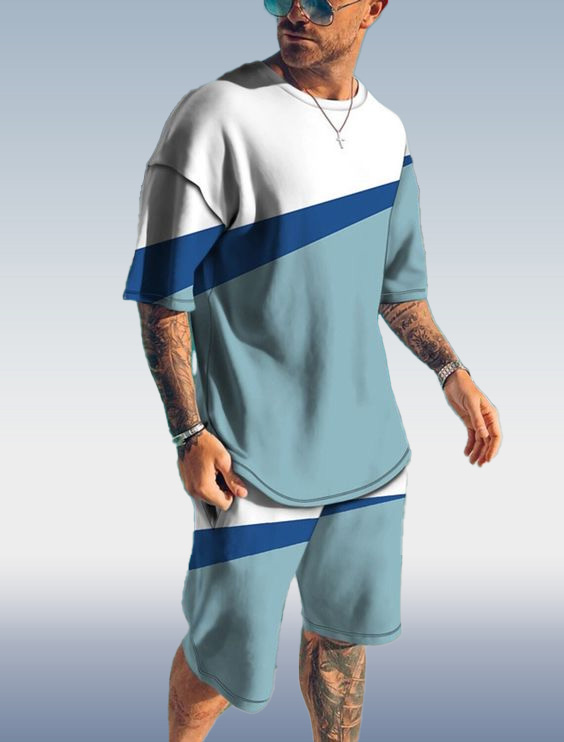 Suitmens Men's Colorblock Blue Print Shorts Suit