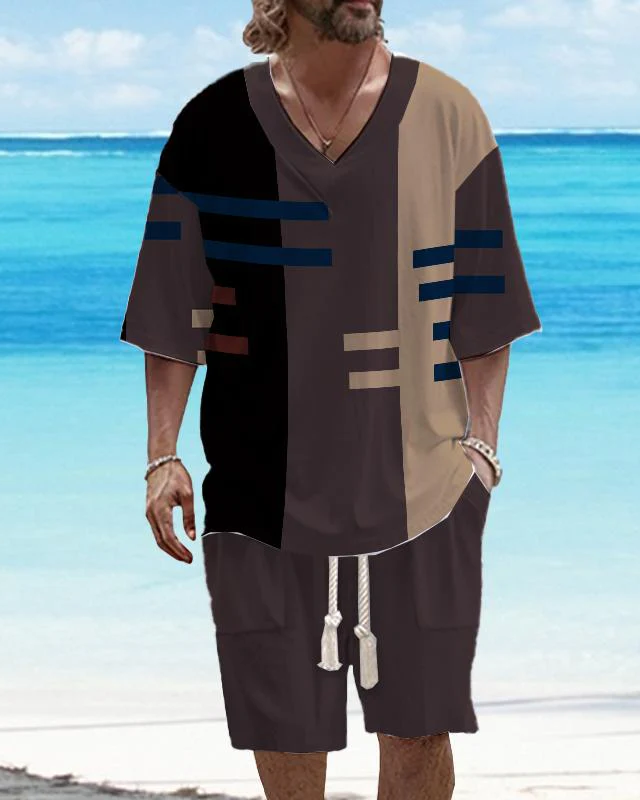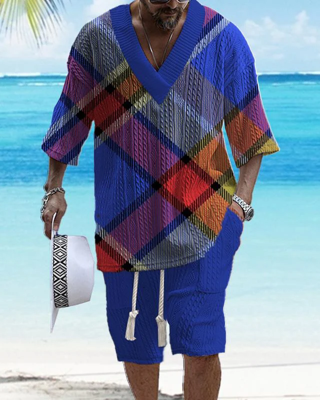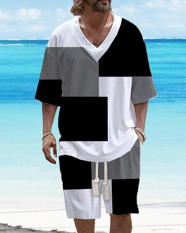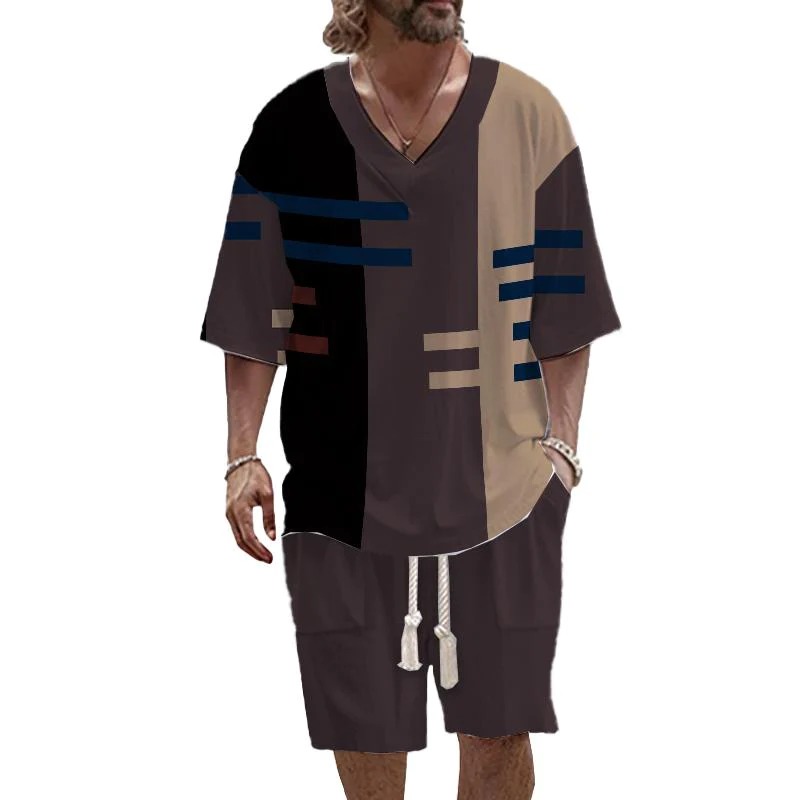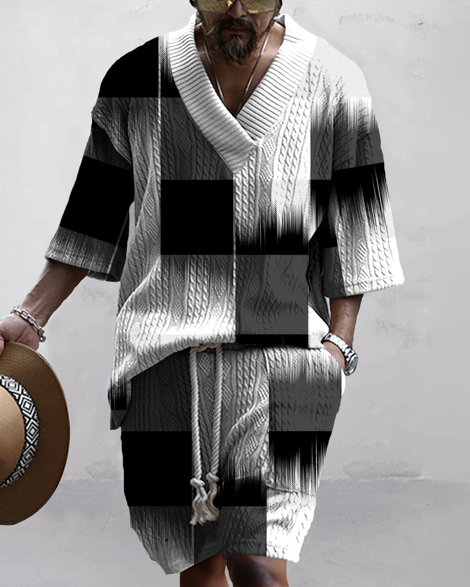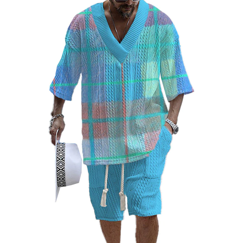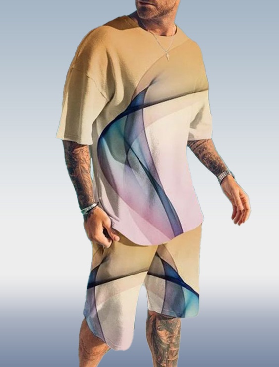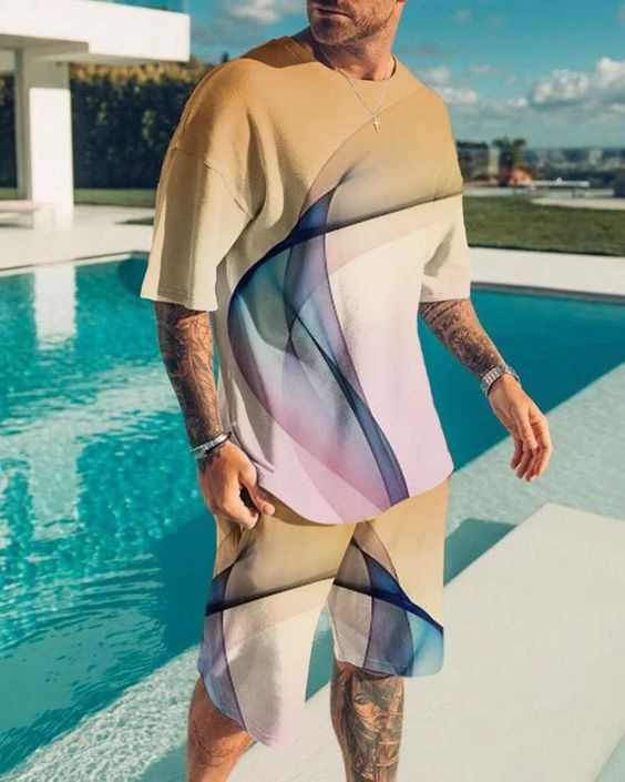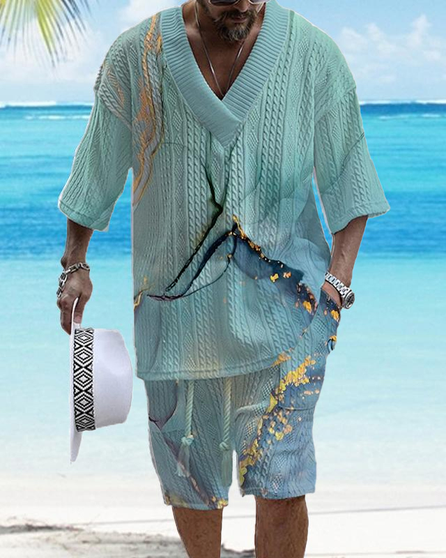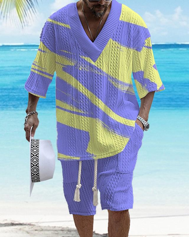 Suitmens Men's Colorblock Blue Print Shorts Suit