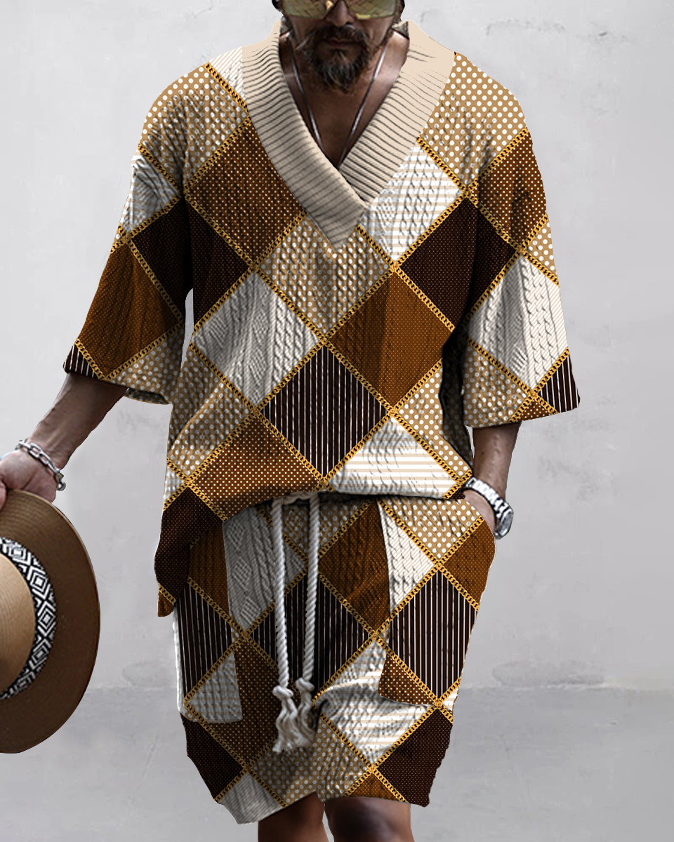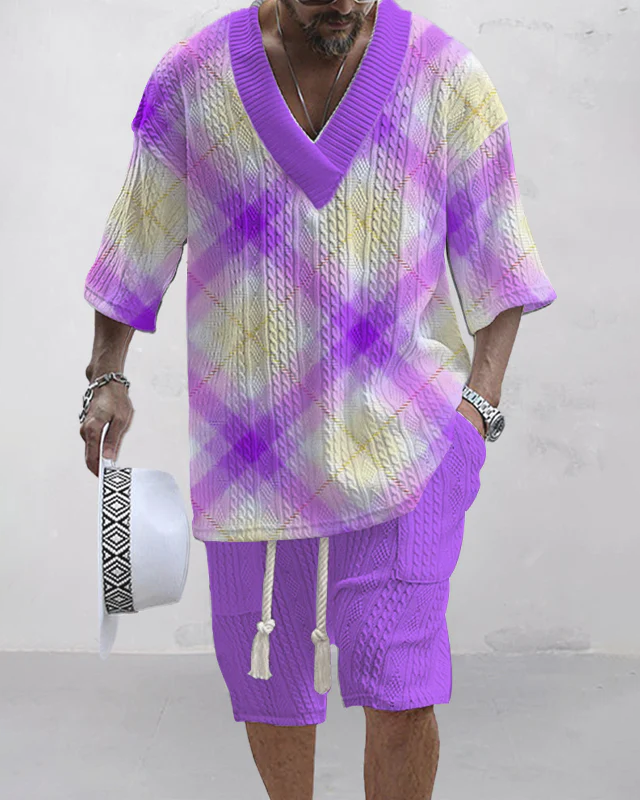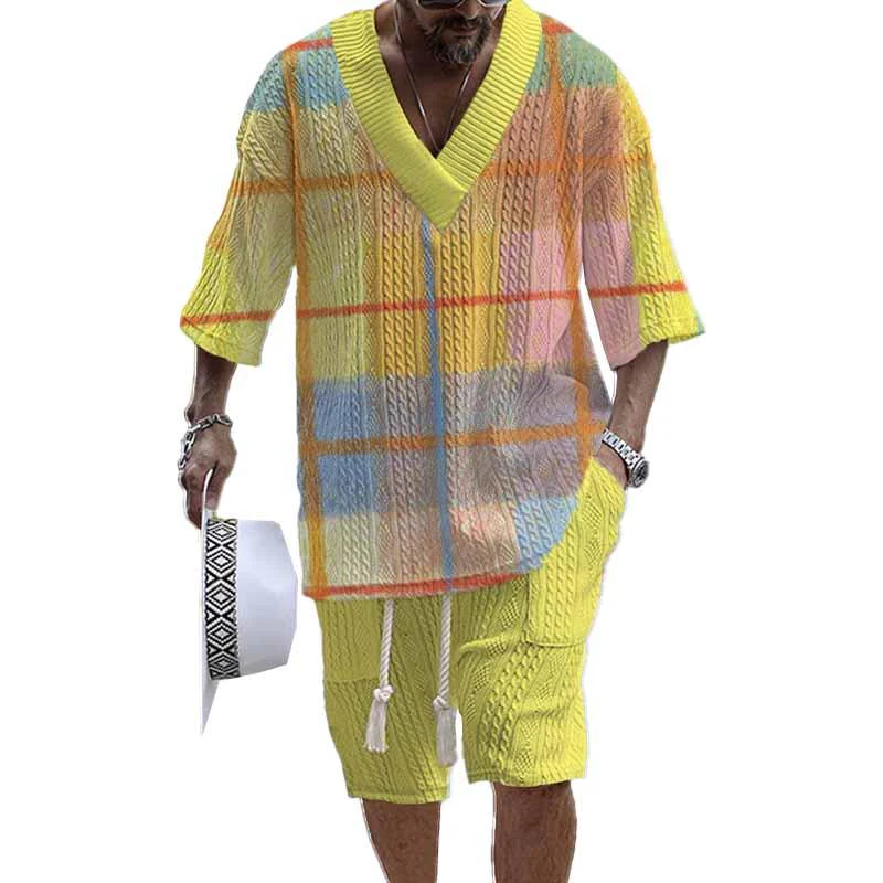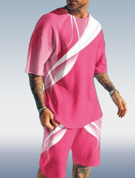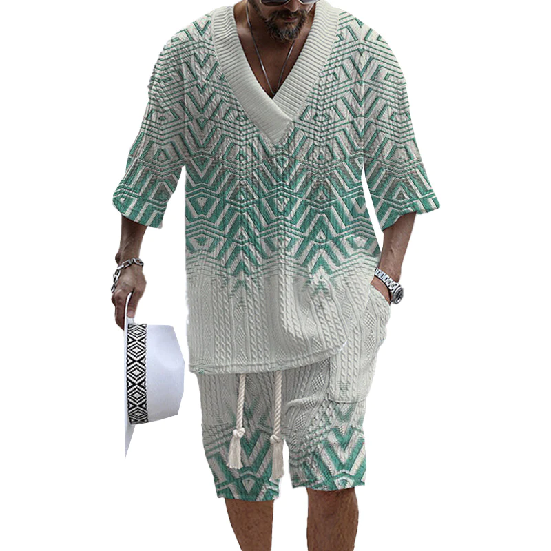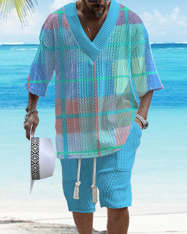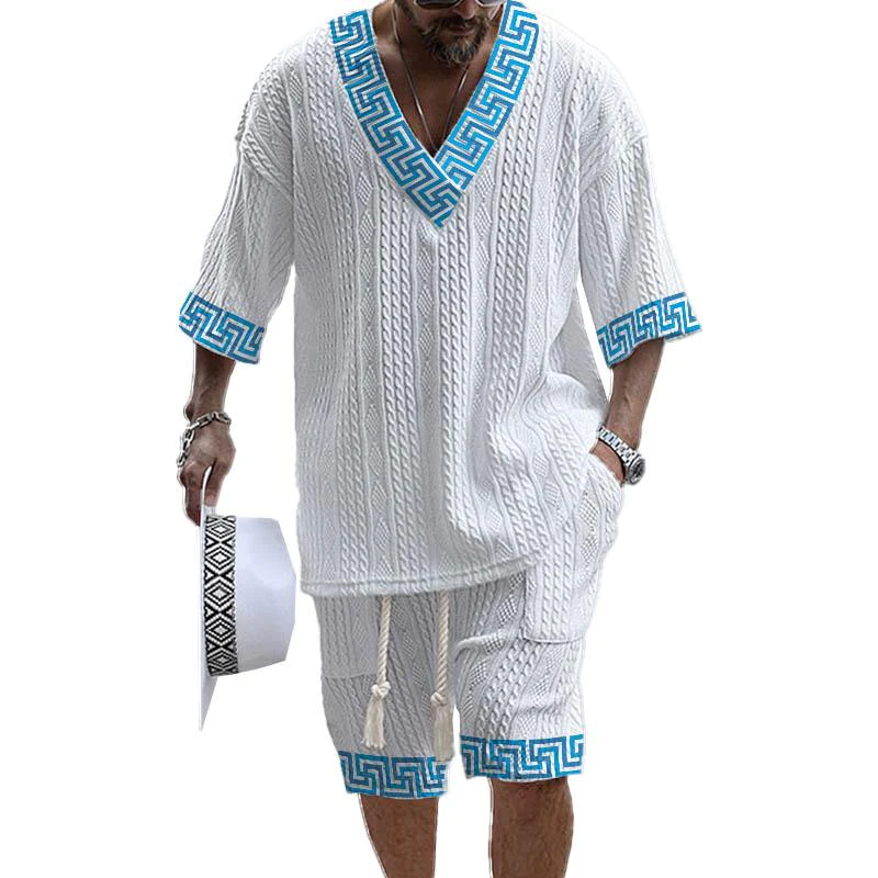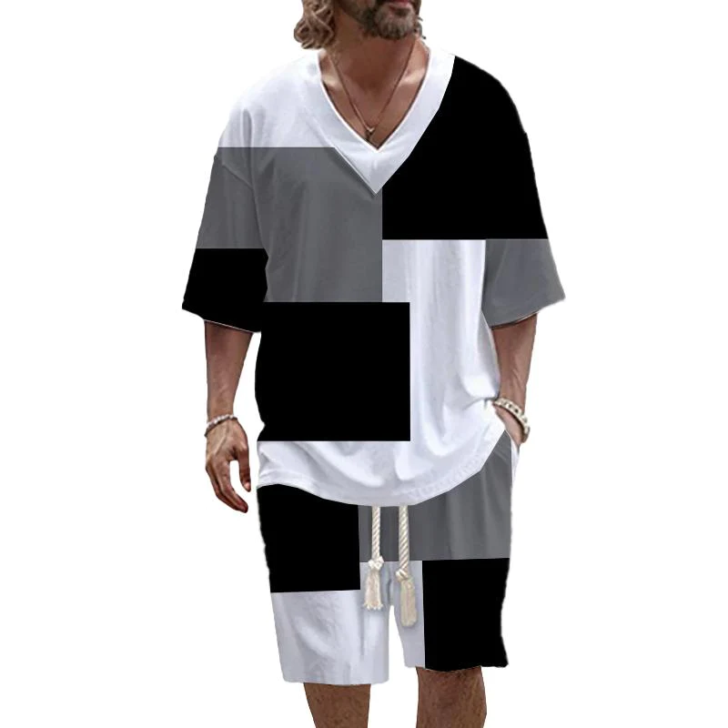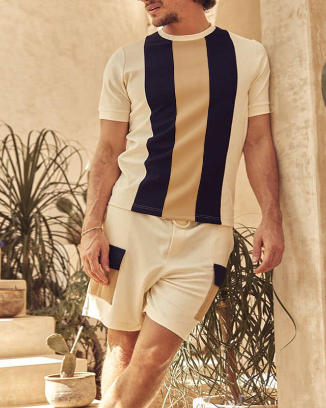 Suitmens Men's Colorblock Blue Print Shorts Suit