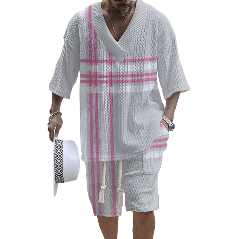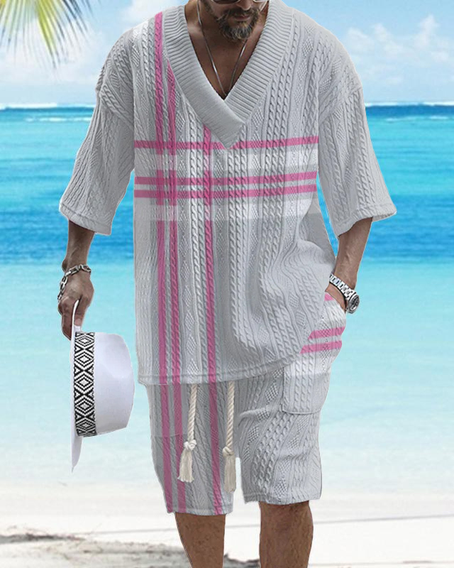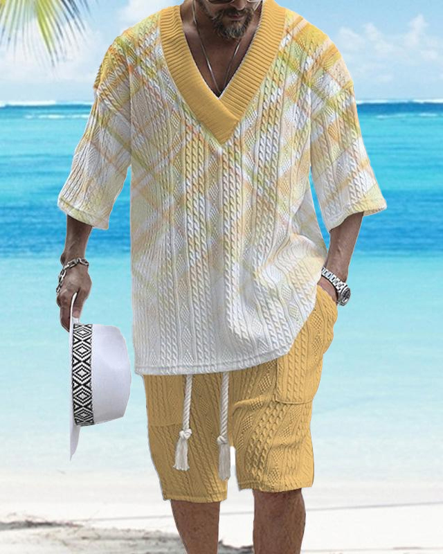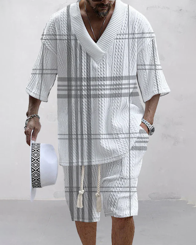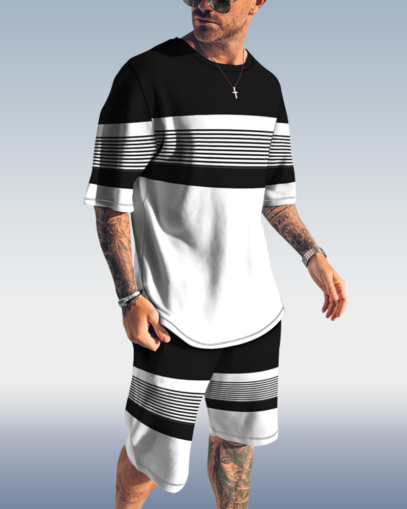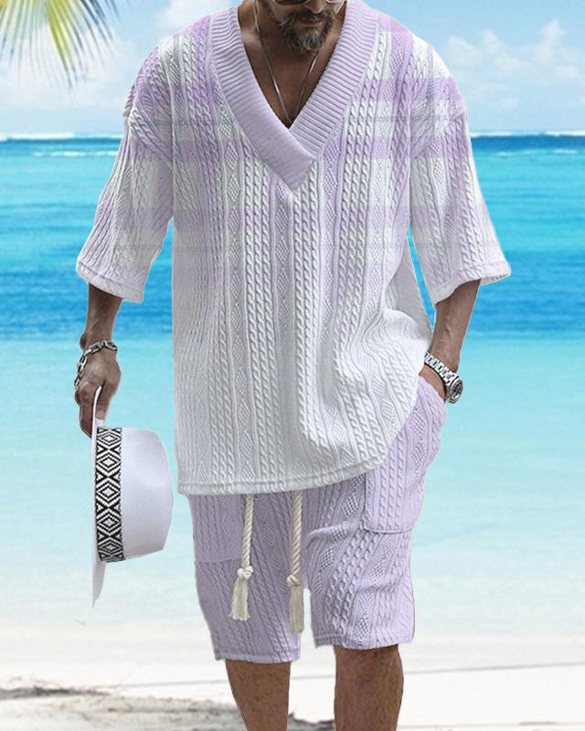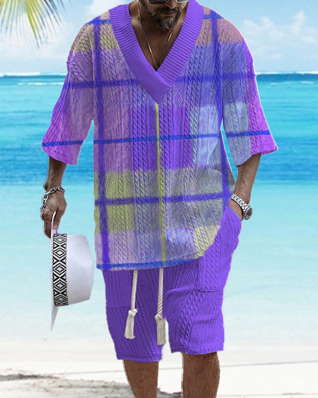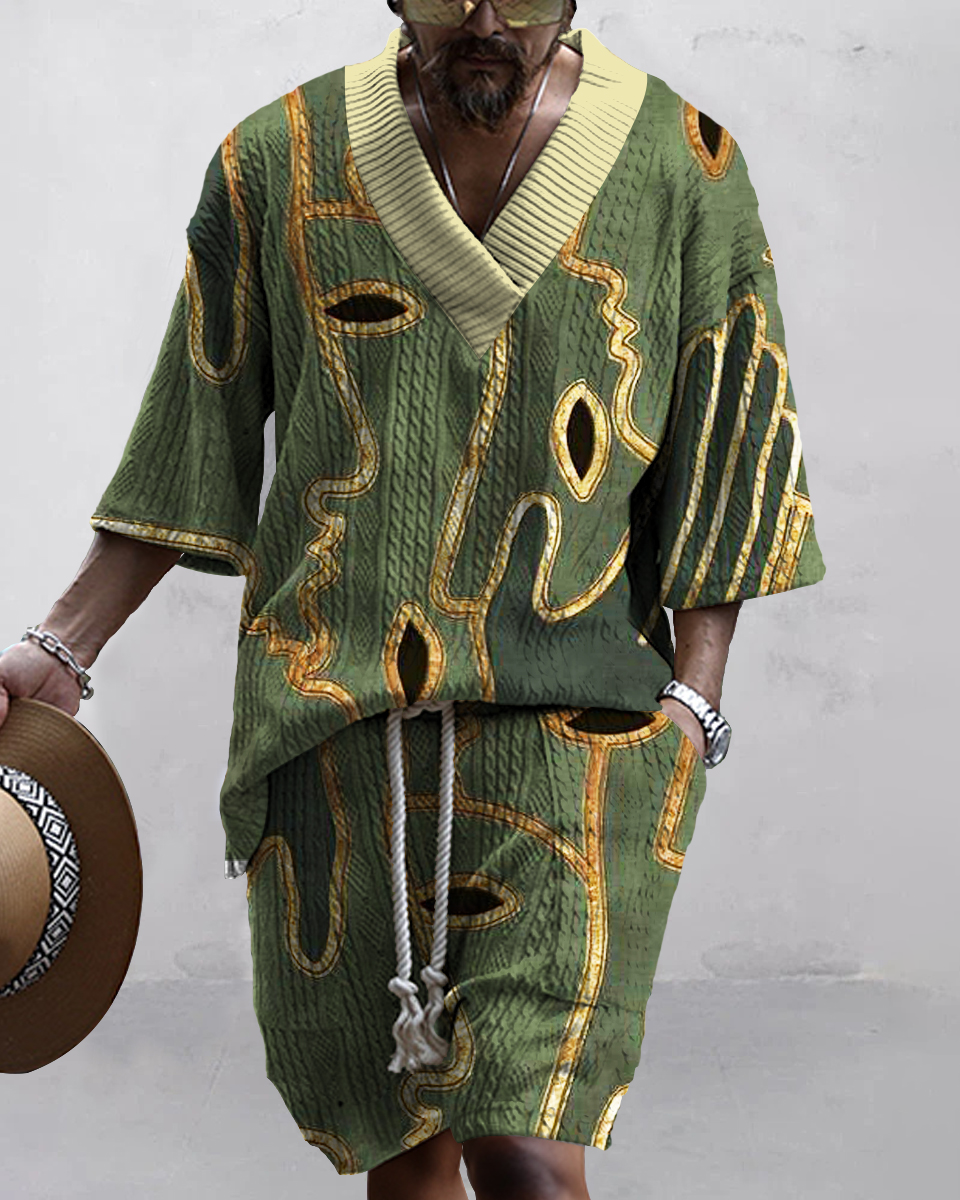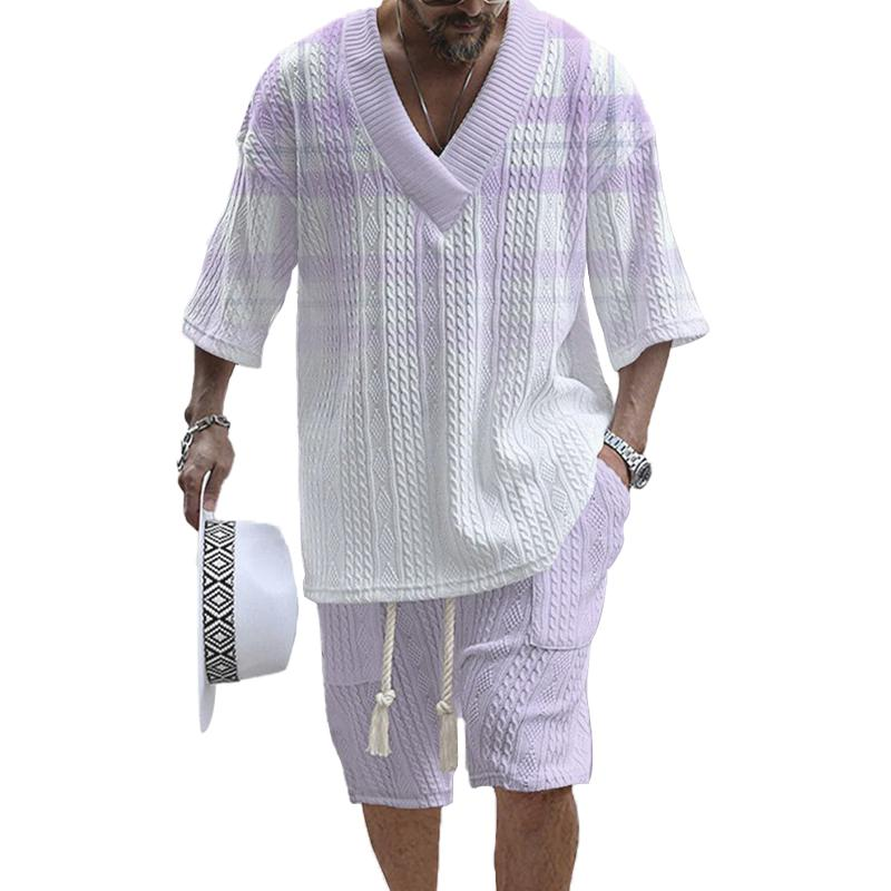 Suitmens Men's Colorblock Blue Print Shorts Suit