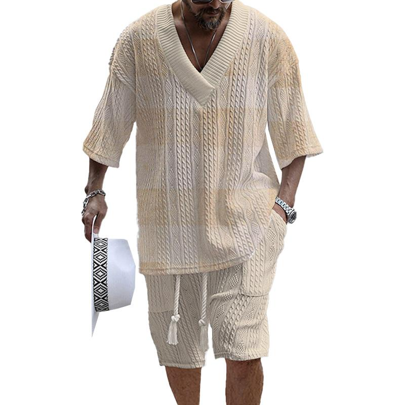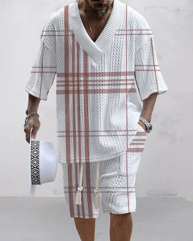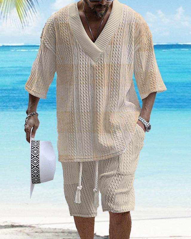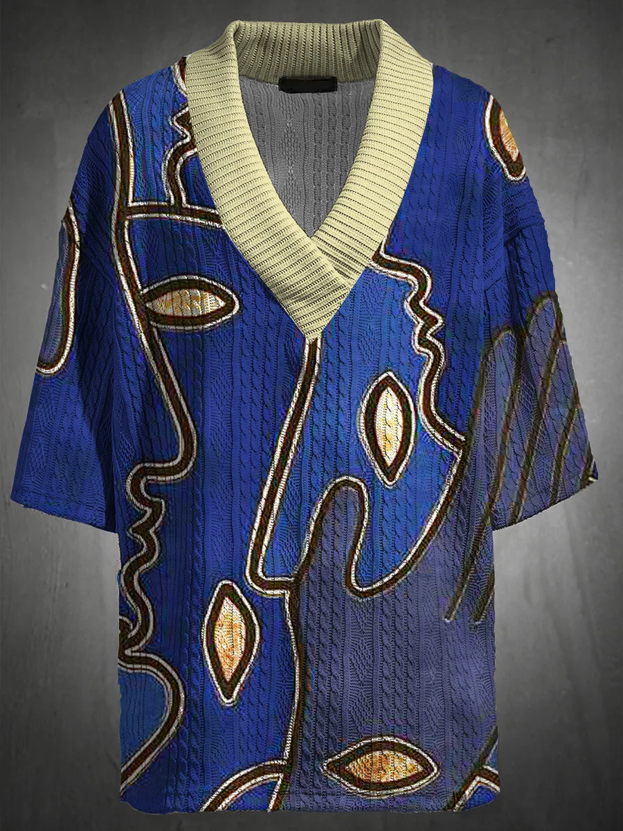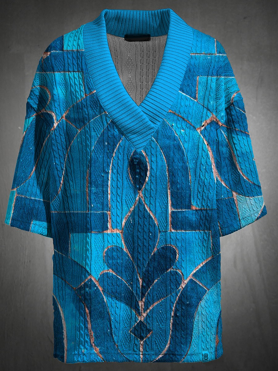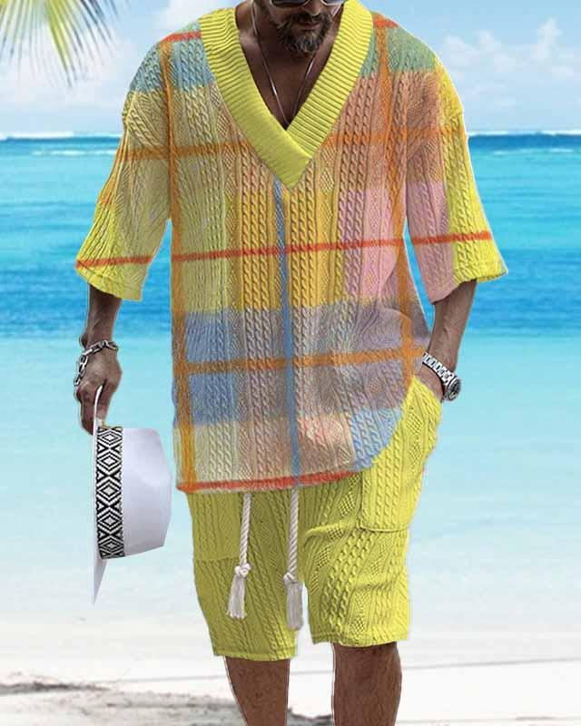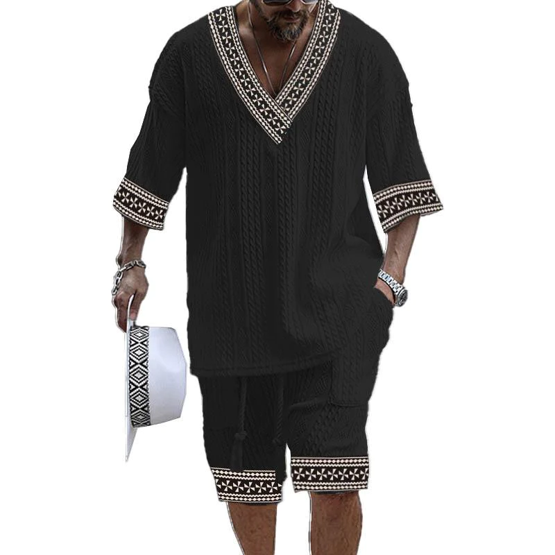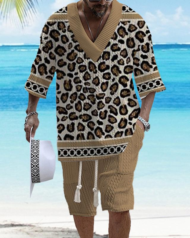 Suitmens Men's Colorblock Blue Print Shorts Suit