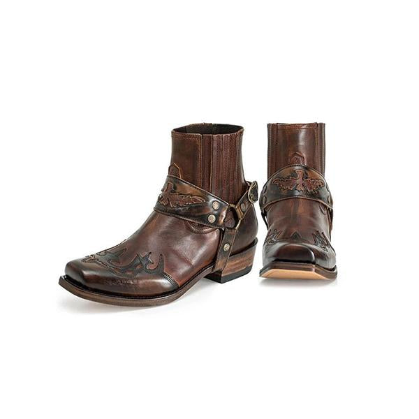 MEN'S RETRO SQUARE MOTORCYCLE LEATHER BOOTS 30940180YL