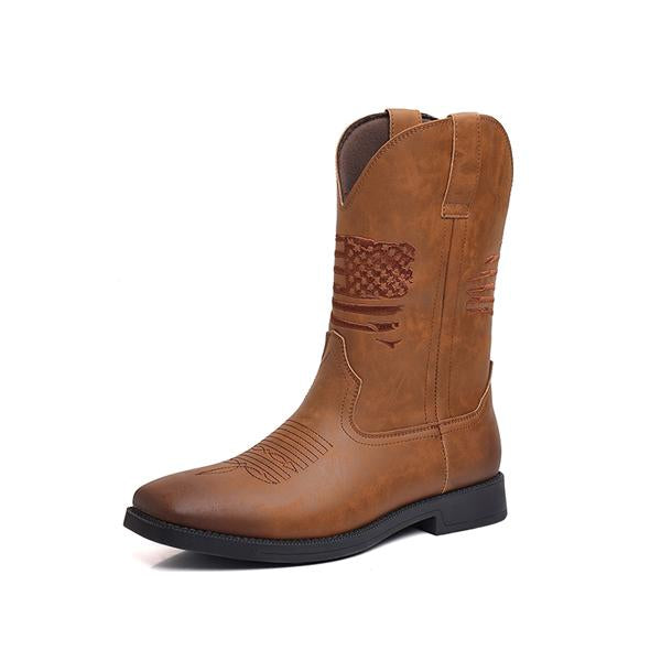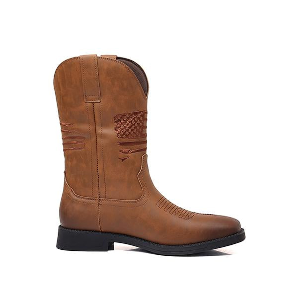 MEN'S FLAG EMBROIDERED WIDE TOE WESTERN BOOTS 39333351S