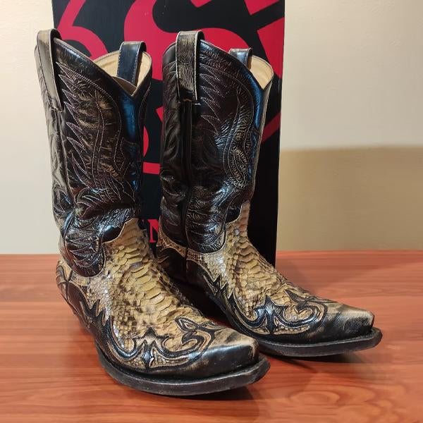 MEN'S RETRO SNAKE PRINT GOLD SPLICED COWBOY BOOTS 01703713S