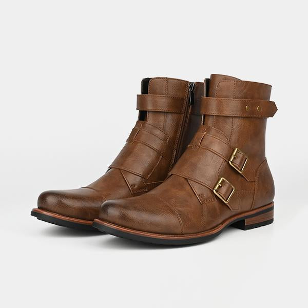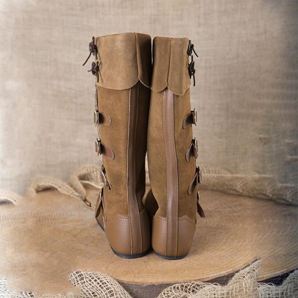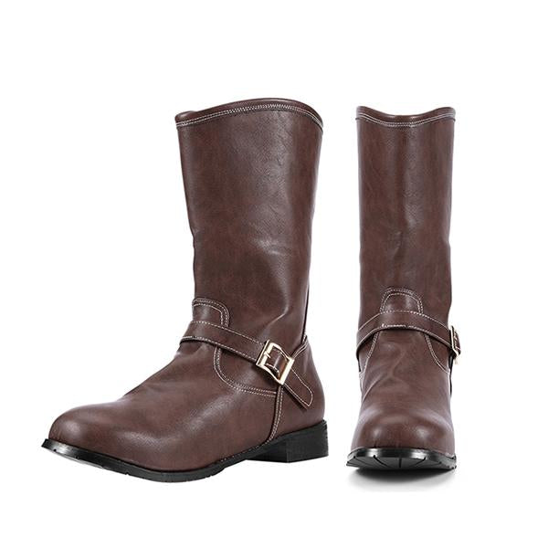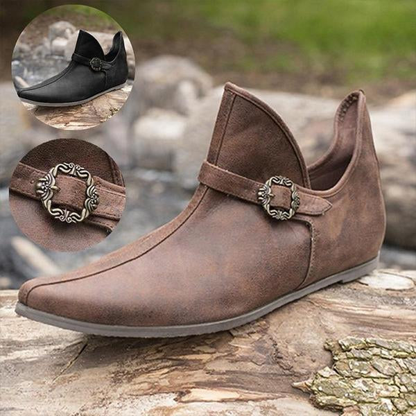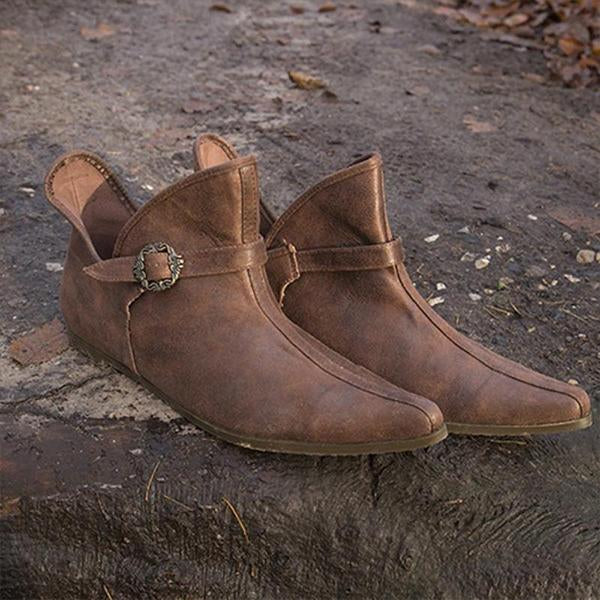 MEN'S RETRO MEDIEVAL FLAT BUCKLE BOOTS 82089783S