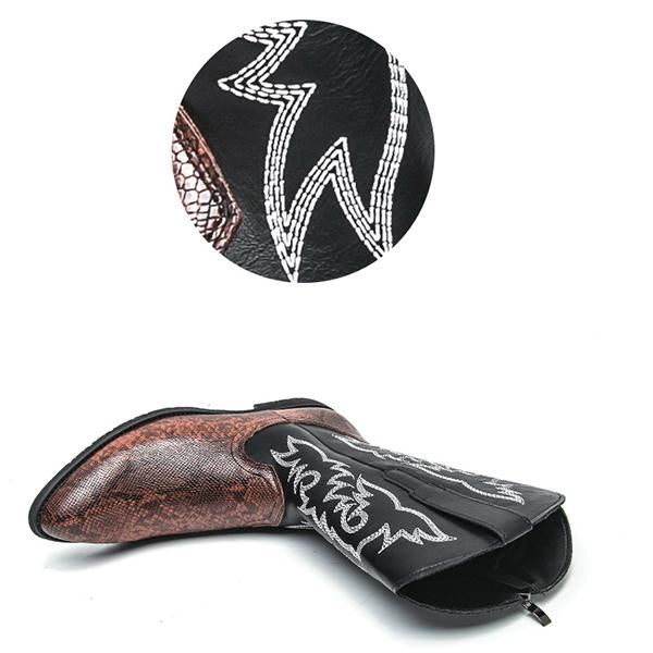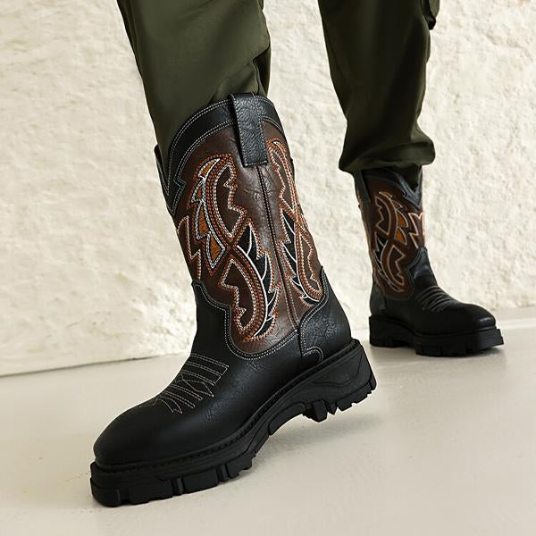 MEN'S RETRO CONTRASTING EMBROIDERY DESIGN WESTERN BOOTS 76234851YL