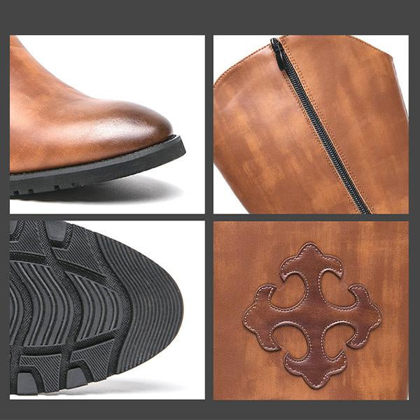 MEN'S RETRO ZIPPER CHELSEA LEATHER BOOTS 20831710YL
