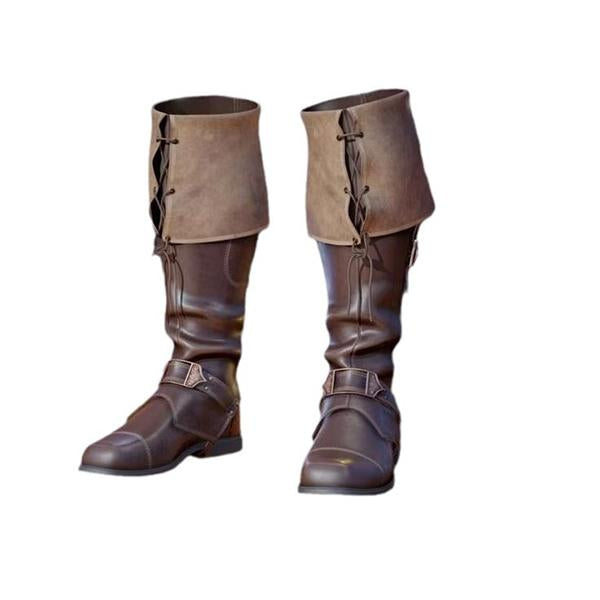 MEN'S VINTAGE MEDIEVAL BELT BUCKLE KNEE-HIGH BOOTS 02395535S