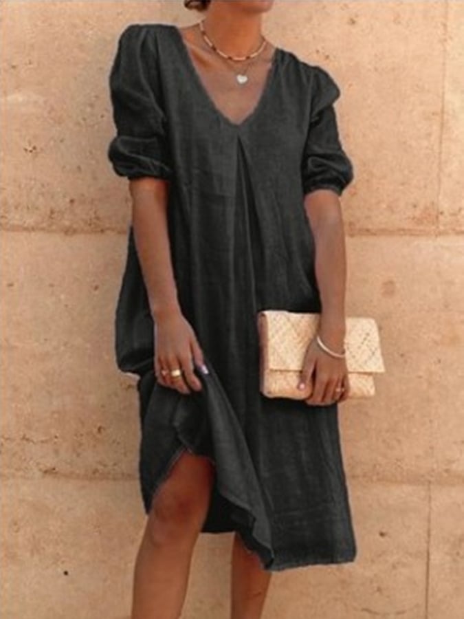 Ladies Cotton Linen Solid Color Fashion Casual Dress