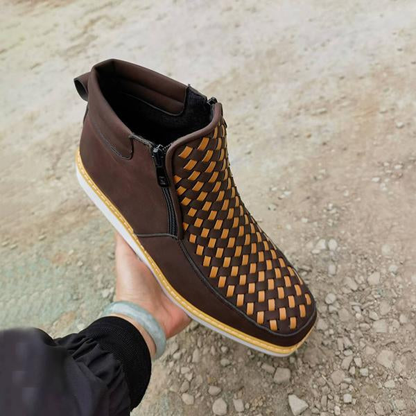 The Men's Casual Braided Side Zipper Cowboy Boots combine rugged Western charm with modern design elements, offering a unique and stylish twist on a classic silhouette. Crafted from premium leather, these boots feature intricate braided detailing along the sides, adding texture and a touch of personality to their timeless cowboy style. The side zipper ensures a convenient and secure fit, allowing for easy on-and-off without sacrificing the boot's structured look. The pointed toe and stacked heel offer a traditional cowboy boot aesthetic, while the comfortable insole and durable outsole provide all-day support and stability. Whether you're heading out for a night on the town or looking to add a bit of flair to your everyday outfit, these boots pair well with jeans, chinos, or even more casual looks, making them a versatile addition to any wardrobe. Combining the best of classic Western design with contemporary ease and comfort, the Men's Casual Braided Side Zipper Cowboy Boots are a bold choice for those who want to stand out while maintaining a laid-back, stylish edge.