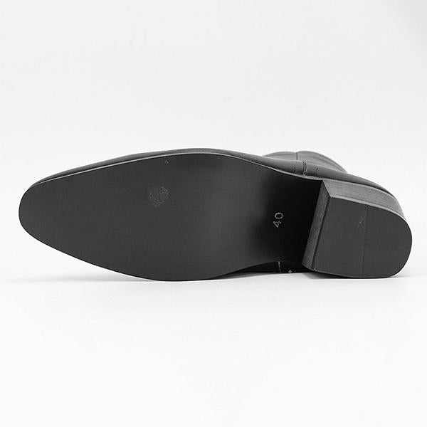 This is a classic pair of black short boots, deep black, simple and versatile, suitable for various styles of clothing. Smooth leather, durable and easy to clean, displaying an elegant luster. The high tube design provides excellent ankle support. The back is equipped with a zipper for easy on and off, increasing the practicality of the boots. The toe of the shoe presents a pointed shape, adding a sense of fashion. Heel: A square heel of moderate height that provides a certain height while maintaining comfort, suitable for daily wear. Overall, these short boots combine fashion and practicality, making them an excellent choice for work or leisure occasions.