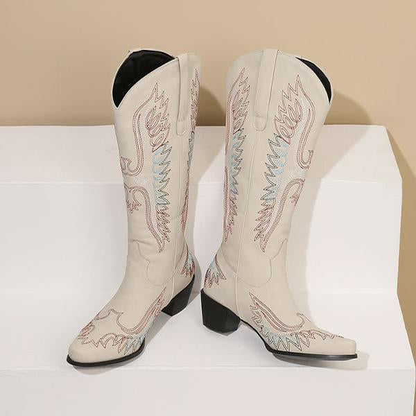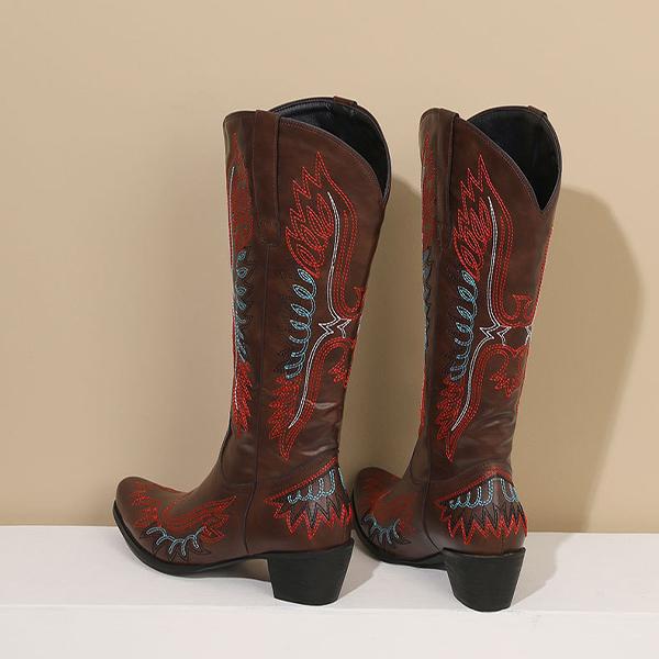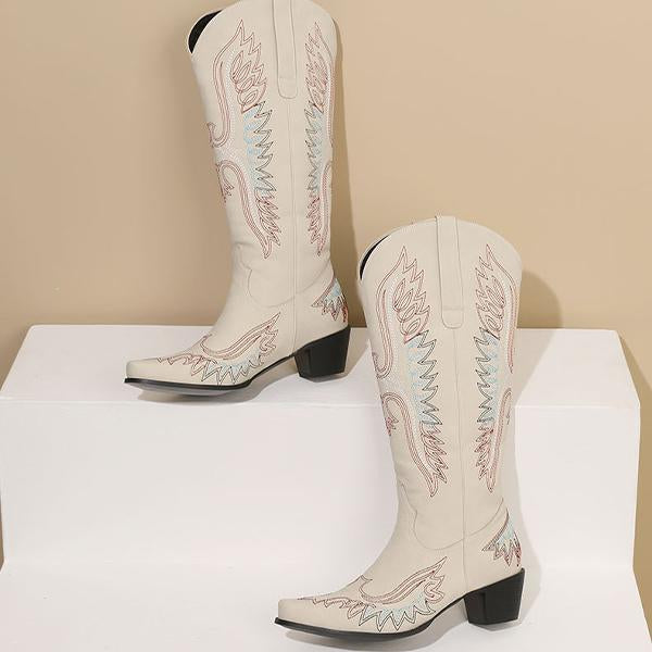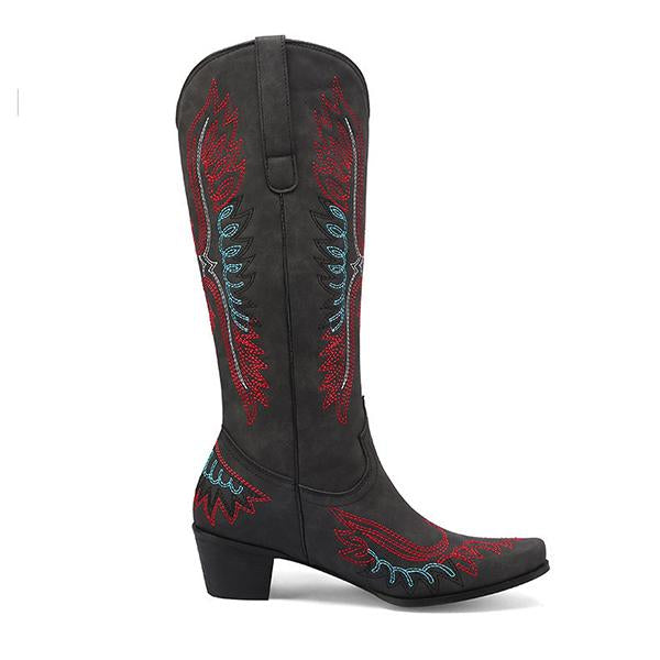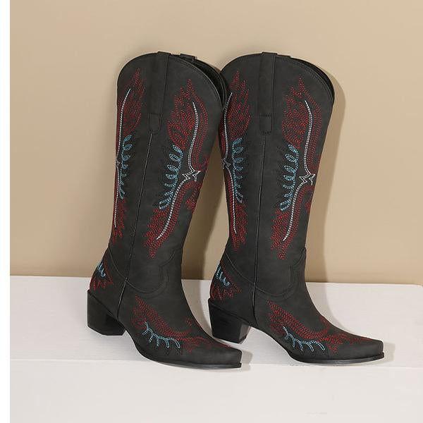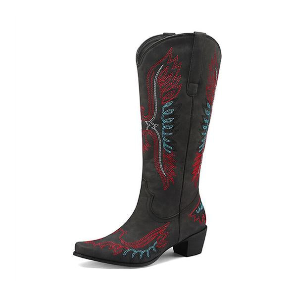 Elevate your style with these Men's Pointed Embroidery Thick Heel Retro Western Boots. Crafted with meticulous attention to detail, these boots feature intricate embroidery that adds a touch of sophistication to their rugged charm. The pointed toe and thick, durable heel provide a bold, confident look while ensuring all-day comfort. Designed with a retro Western flair, these boots are perfect for making a statement, whether you're at a casual gathering or a night out. Pair them with jeans or tailored trousers for an effortlessly stylish ensemble.