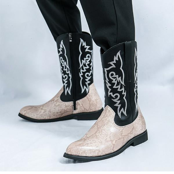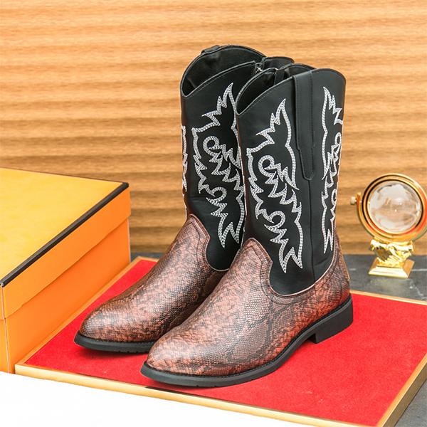The Men's Retro Embroidered Knight Boots blend timeless medieval style with modern craftsmanship, creating a bold and distinctive look. These boots feature intricate embroidery along the shaft, inspired by knightly designs, evoking a sense of regality and tradition. Crafted from premium leather, the boots offer a rounded toe, depending on the design, and a sturdy heel for a vintage flair. The high shaft provides excellent coverage, while the side zipper or lace-up closure ensures a snug and comfortable fit. With a cushioned insole for long-lasting comfort and a slip-resistant sole for stability, these boots are ideal for cosplay, themed events, or anyone looking to add a knightly, retro touch to their wardrobe. Perfect for those who want to embody the bold spirit of medieval knights with a fashionable, contemporary twist.