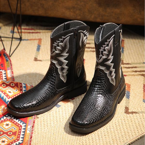 The Men's Retro Embroidered Western Boots offer a stylish nod to classic cowboy heritage, combining intricate detailing with rugged durability. Made from premium leather, these boots showcase beautiful, vintage-inspired embroidery along the shaft, adding a touch of character and artistry. The square toe and classic Western heel give them an authentic, timeless silhouette, while pull-on side tabs make them easy to wear. With a sturdy, non-slip outsole, these boots are built for stability on various terrains, making them perfect for both everyday wear and special occasions. Ideal for adding a Western-inspired flair to any look, these boots are a must-have for fans of classic style with a retro twist.