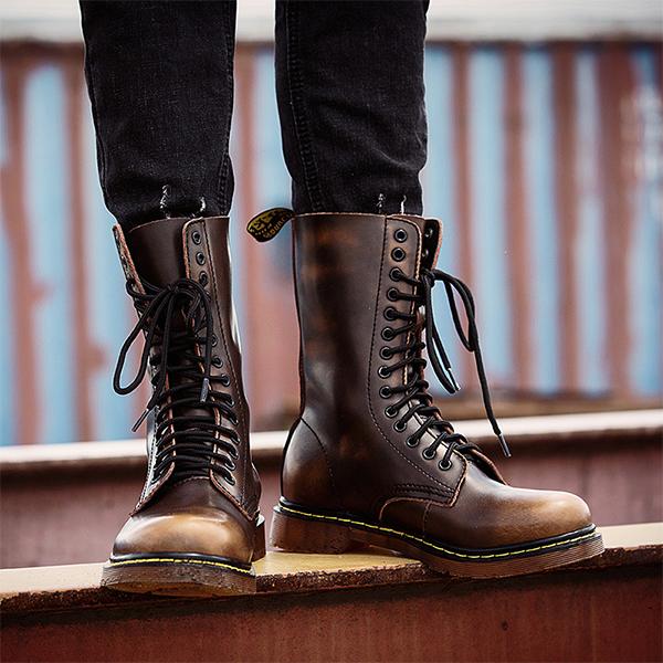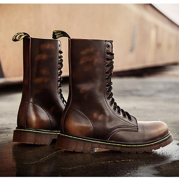 The Men's Retro Lace Up Biker Boots combine rugged functionality with vintage-inspired style, perfect for the modern rider or anyone seeking a bold look. Crafted from durable, high-quality leather, these boots feature a secure lace-up design that provides an adjustable fit, along with classic biker details like reinforced stitching, metal accents, and a slightly distressed finish for an authentic, worn-in feel. The cushioned insole ensures all-day comfort, while the thick, non-slip outsole provides stability and traction on and off the bike. These boots pair effortlessly with jeans and leather jackets, making them a stylish and practical choice for any adventure.