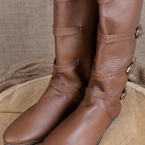 With a timeless silhouette, these boots are versatile enough to pair with various outfits, from casual to more dressed-up ensembles. Whether you're attending a themed event, Renaissance fair, or simply want to make a bold fashion statement, these boots offer a unique blend of style and functionality that captures the essence of a bygone era. Perfect for those who appreciate vintage fashion with a contemporary twist, they are a must-have addition to any wardrobe.