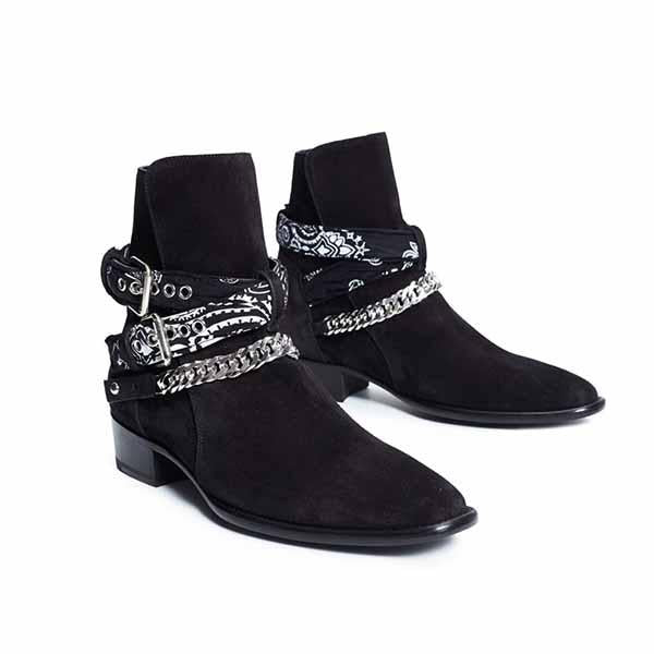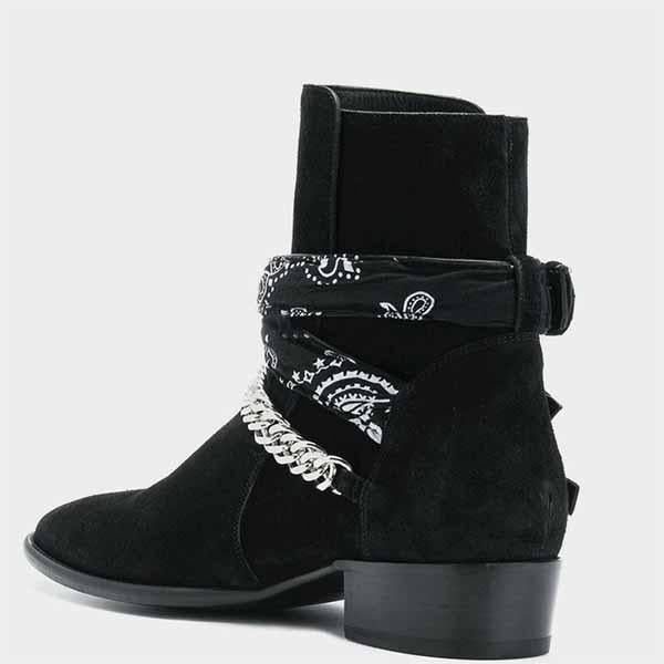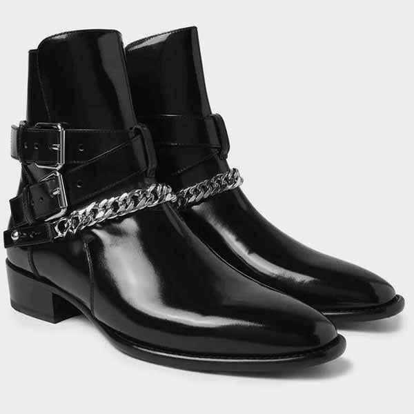 The Men's Retro Metal Chain Ankle Boots bring a bold and edgy vibe to classic footwear. Featuring a striking metal chain detail across the ankle, these boots combine vintage-inspired design with contemporary attitude. Crafted from premium leather, they exude durability and a luxurious finish. The boots are designed with a side zipper for easy wear, a comfortable cushioned insole, and a sturdy outsole for reliable traction. Ideal for casual and semi-formal settings, they pair effortlessly with jeans, leather jackets, or tailored outfits, making them a statement piece for anyone looking to elevate their style with a retro edge.