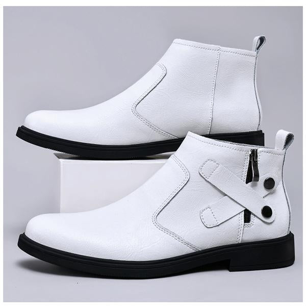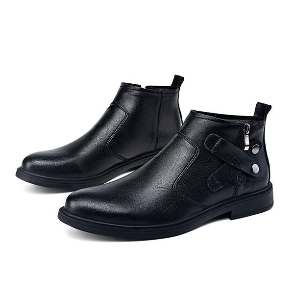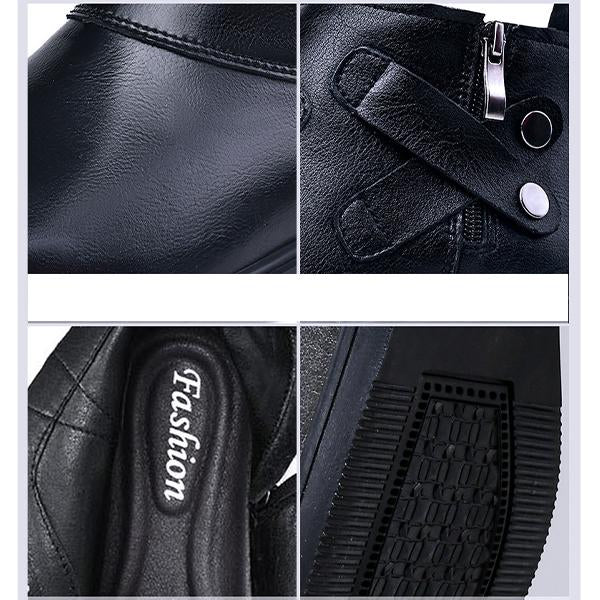 The Men's Retro Personalized Zipper Buckle Design Short Boots are a striking combination of rugged style and unique detailing, perfect for making a bold statement. Made from high-quality leather, these ankle-height boots feature a convenient side zipper for easy wear and distinctive buckle accents that add an edgy, personalized touch. The retro-inspired design, complete with subtle distressing and reinforced stitching, provides a vintage look with modern flair. A cushioned insole ensures lasting comfort, while the durable, non-slip outsole provides stability on various surfaces. Ideal for pairing with jeans or casual pants, these boots bring a cool, individualistic edge to any outfit, effortlessly blending style with functionality.