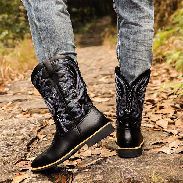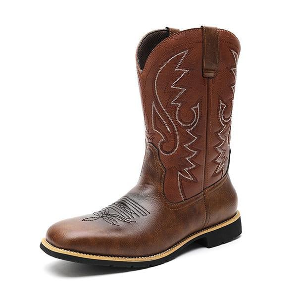 Introducing the Men's Retro Square Toe Western Cowboy Boots, a perfect blend of rugged charm and timeless Western style. These boots feature a distinctive square toe design, offering a modern twist on the classic cowboy silhouette. Crafted from premium leather, they showcase traditional Western stitching and detailing that exudes authentic cowboy flair. Built for durability, these boots are made to withstand tough conditions while providing all-day comfort. With a sturdy, slip-resistant outsole, these boots offer excellent traction whether you're on the ranch or out on the town. The cushioned insole ensures comfort during long hours of wear, making them perfect for both work and casual occasions. Pair them with jeans or your favorite Western attire for a bold, confident look that pays homage to classic cowboy style. Step into the spirit of the West with these Men's Retro Square Toe Western Cowboy Boots — designed for those who embrace adventure and timeless fashion.