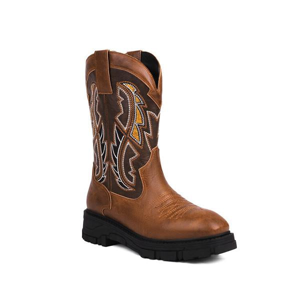 Introducing the Men's Round Toe Embroidered Retro Boots, a perfect blend of timeless style and artisanal craftsmanship. These boots feature a classic round toe design that adds a touch of rugged sophistication to your wardrobe. The intricate embroidery detailing on the premium leather upper showcases a vintage-inspired flair, making these boots a standout choice for both casual and dressy occasions. With a durable construction and a cushioned insole, they provide lasting comfort and support for all-day wear. The sturdy rubber sole offers excellent traction, ensuring stability on various surfaces. Whether you're pairing them with jeans or chinos, these retro boots bring a touch of elegance and personality to any outfit. Step into a world of classic charm and enduring style with these embroidered boots!