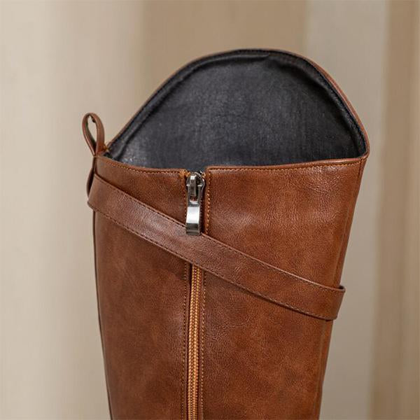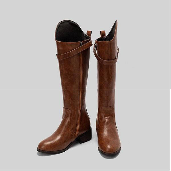 MEN'S ROUND TOE RETRO STYLISH LEATHER BOOTS are a versatile and stylish footwear option that combines comfort with a trendy aesthetic. These boots feature a classic round toe design, offering ample room for the toes and contributing to overall comfort.The knee-high silhouette provides additional coverage and warmth, making them suitable for various seasons. Crafted from high-quality materials, these boots are durable and designed for everyday wear.With a flat sole, they offer stability and ease of movement, making them ideal for casual outings or daily activities. The simple yet elegant design allows for easy pairing with jeans, trousers, or even shorts, making them a great addition to any wardrobe.
