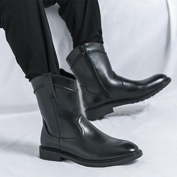 These boots showcase a sleek round toe silhouette, providing a timeless look that effortlessly complements any outfit. The solid color options allow for versatile styling, making them an ideal addition to your wardrobe. Designed with a convenient side zipper, these boots offer easy on-and-off access without compromising on style. The premium quality materials ensure durability, while the cushioned insole delivers exceptional comfort for all-day wear. Whether you're heading to work, enjoying a night out, or simply running errands, these boots provide the perfect blend of function and fashion. With a retro flair that pays homage to classic boot designs, our Men's Round Toe Solid Color Retro Side Zipper Boots are perfect for the modern man seeking a stylish yet practical footwear option. Step out confidently and make a statement with these essential boots that combine elegance with everyday ease!