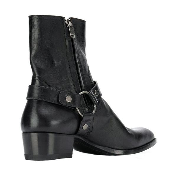 The Men's Side Zipper Fashionable Leather Short Boots are a stylish, modern addition to any wardrobe, offering both convenience and sophistication. Crafted from premium leather, these boots feature a sleek, ankle-high silhouette with a side zipper that allows for easy on-and-off wear while maintaining a polished look. The minimalist design is complemented by subtle stitching details, making these boots versatile enough to pair with jeans, chinos, or dress pants. A cushioned insole provides comfort for all-day wear, and the durable, non-slip outsole ensures stability on various surfaces. Perfect for those seeking a refined, contemporary style with a touch of urban edge.