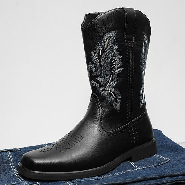 Step into bold, Western-inspired style with these Men's Square Toe Side Zipper Retro Western Embroidery Boots. Featuring a distinctive square toe design, these boots bring a modern edge to a classic silhouette. Intricate embroidery adds a touch of vintage charm, while the side zipper ensures easy on-and-off wear. Crafted from premium leather, they offer durability and all-day comfort. Perfect for pairing with jeans, chinos, or Western-themed outfits, these boots are ideal for casual outings, rodeos, or making a statement wherever you go.